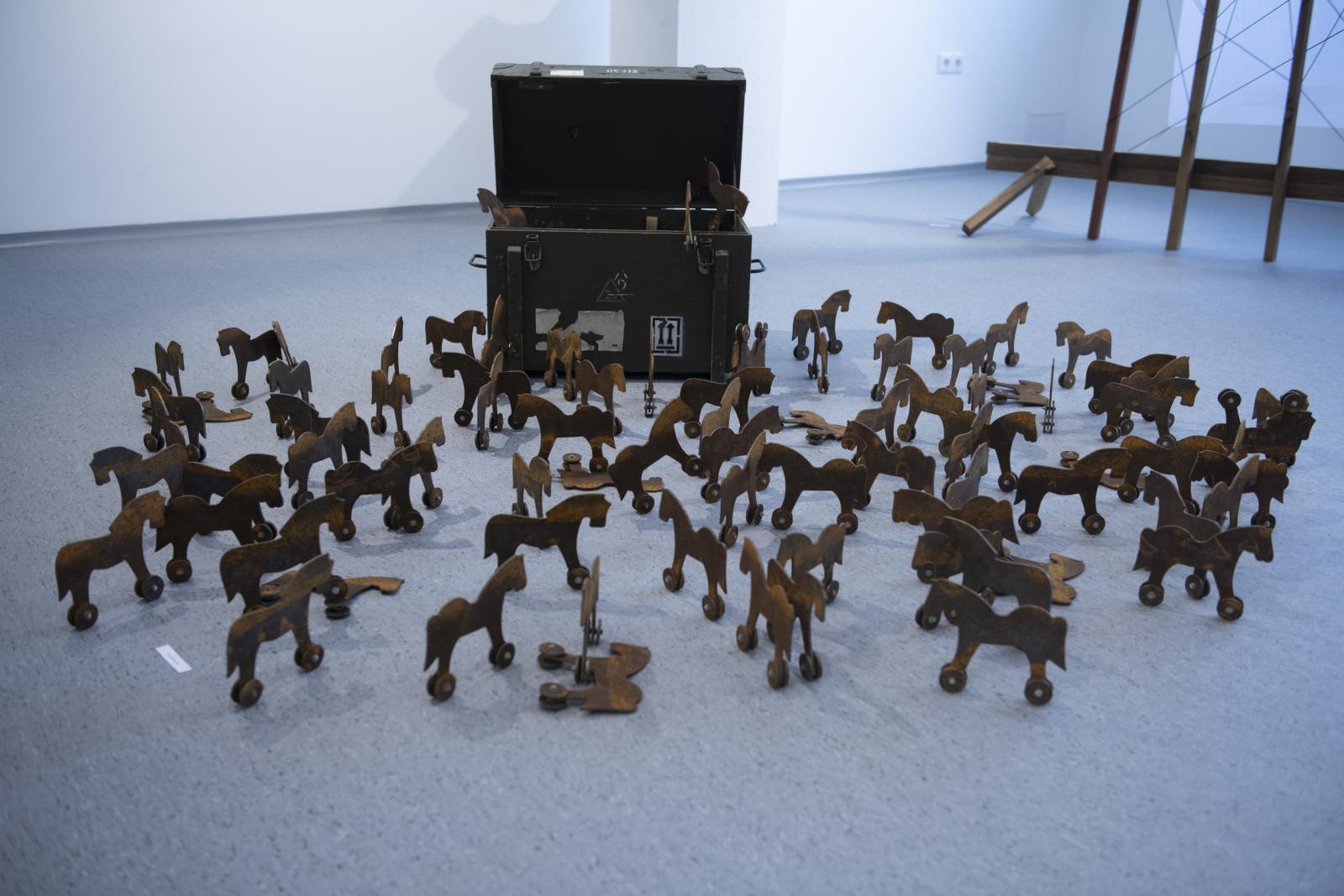 A megnyitó után Csaba tárlatvezetése mellett benéztünk a házakba, melyeket kiállítótérré alakítottak át. A wunderkammer hívószó inspiratívnak bizonyult, minden egyes művészt más-más módon ihletett meg. Volt, aki a saját apró dísztárgyaiból álló gyűjteményét állította ki egy kabinetszekrényben, míg Fürjesi Csaba stelázsipapírra készült nyomatán a ceredi asszonykórus tagjairól készített régi fotókat montírozta egymásra, így teremtve meg az énekes hölgyek wunderkammerjét. Egy másik művén pedig a Blanche the vidiot alkotócsoporttal az asszonyok énekét keverte össze elektronikus ütemekkel. A kiállított művek egymásra is hatottak, így bármelyik tárlatot is néztük meg, mindegyikben egy-egy újabb „csodakamra” tárult fel előttünk.