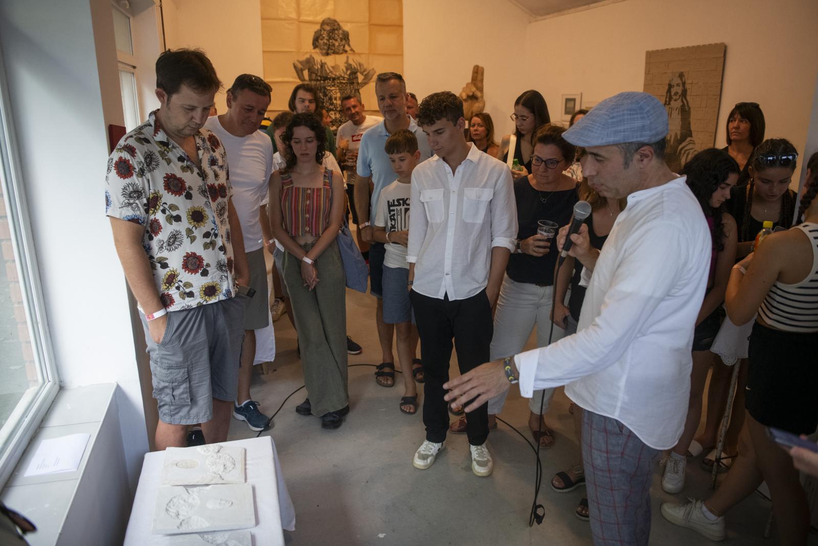 Cereden Fürjesi Csaba első körben a Jókai utca 19. szám alatti ArtComplex épületébe vezet minket, azon belül is a tavaly alapított Galéria ’23-ba, melyben aznap nyílt a Sites and Roots II. című kiállítás, amely bemutatja a Ceredi Művésztelep korábbi alkotóinak munkáit. Míg körbesétálunk, látjuk, hogy főleg a visegrádi országokból érkeztek ide alkotók, de Csaba elmondja, hogy a világ számos tájáról utaznak hozzájuk művészek. Megmutatja saját alkotását is, mely egy második világháborús, fából készült borotválkozódoboz, melyet fényobjektté (light box) alakított. A belsejében egy félgömböt helyezett el, melyet alulról fénnyel világított meg, így szimbolizálva azt, hogy akik ezt a dobozt a háború alatt használták, az volt számukra maga a hordozható univerzum, az ő külön bejáratú intim világuk.