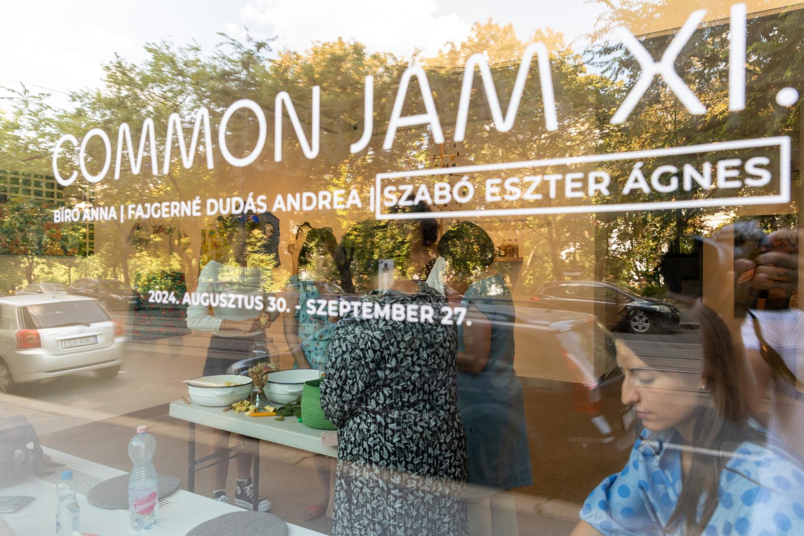 A Common Jam XI. Kiállítás megnyitóján a művészek felváltva kevergették a lekvárt, miközben Mélyi Márta megható beszédet mondott, Fajgerné pedig kibontotta a tavalyi dunsztot, amelybe még Eszter tette el az üvegeket. Felidézte a 2018-ban, Szalipszki Judit kurátorral tervezett, SantoPalato című eat art-kiállításukat, amikor egy koreai művész megosztotta velük kutatását, hogy „a kezünkben olyan enzimek vannak, ami minden embernek más. Ezért nem tudunk olyant sütni vagy főzni, amilyet az anyánk vagy az apánk. 2023-ig ebben még benne vannak Eszter enzimjei. Mostantól nem lesznek, de ezt még meg tudjátok kóstolni” – zárta beszédét elérzékenyülten Fajgerné. Aztán előkerültek a Györgyi által készített, valóban különleges ízű bonbonok, egy üveg bor, a hangszóróból Eszter kedvenc zenéje szólt, jöttek a barátok, családtagok, művésztársak, és a Common Jamet újra körbenőtte az élet.