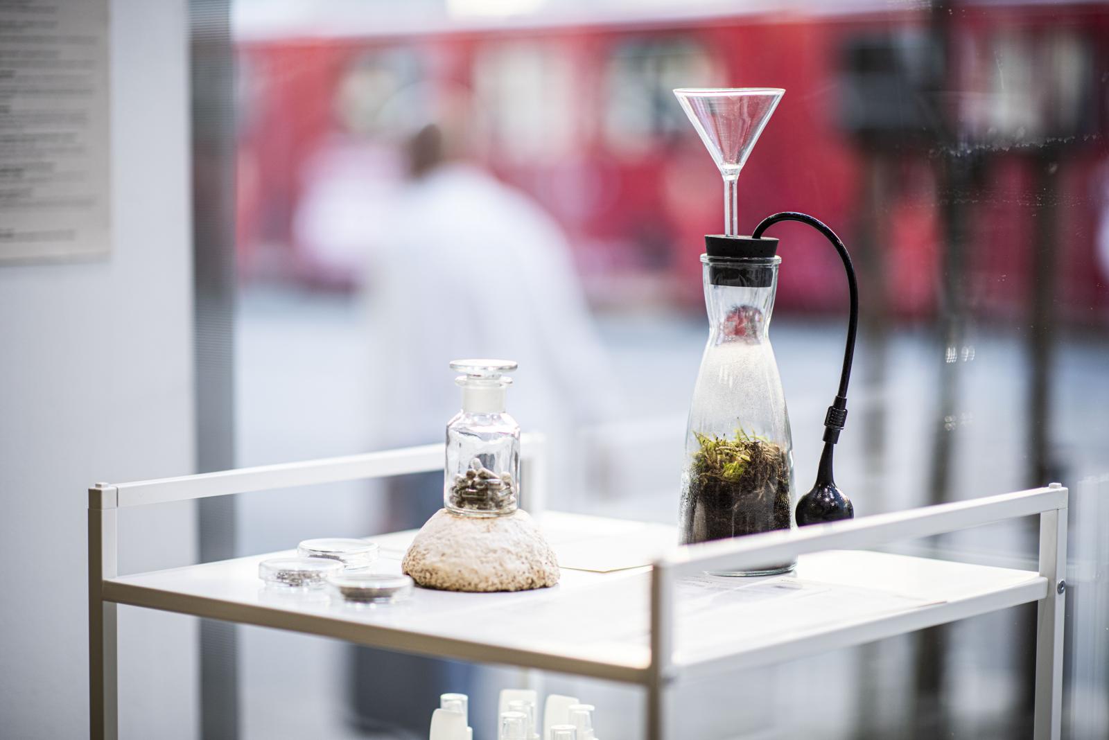 A szeptember 21-ig tartó budapesti Placcc Fesztivál számos izgalmas eseményt tartogat, az egyik ilyen az általunk meglátogatott. A Microbial Futures Lab, amely egy utazó laboratórium, a jövő gyógyszereinek, kezeléseinek folyamatosan bővülő gyűjteménye, melynek középpontjában emberi és nem-emberi létezők, vizek, erdők, atmoszférák és városok kölcsönös jóléte áll. Az elképzelt orvosságokat néhány napra egy Múzeum körúti patikában állították ki.