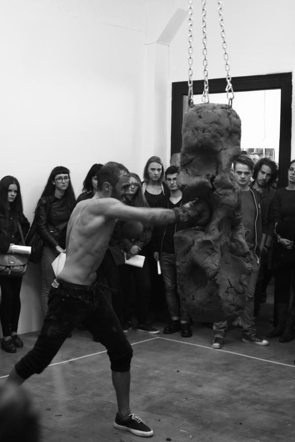 Fel is vették elsőre a szobrász mester szakra, az első tanévben viszont nem találta a helyét, mígnem egy tanára azt a feladatot adta, hogy nyomot kell hagyniuk valamilyen anyagon. – Erre a témára készítettem agyagból egy bokszzsákot, egy stáb pedig levideózta, ahogy bokszkesztyűben püfölöm azt. Ez már akkor meglepő volt mindenkinek, hiszen nem nagyon tudták hova tenni a performance-ot. Egy tanárom, Septimiu Jugrestan viszont azt mondta, hogy olyan dolgot hoztam létre, amit nem tudnak elvenni tőlem, mert az annyira erős.
