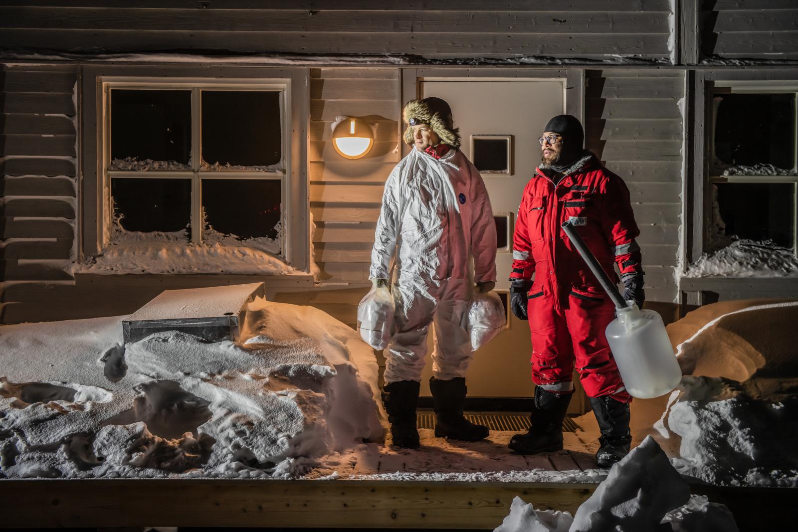 Az expedíciók során viszont művészi igényű képsorozatokat is készít, és a saját ötleteit is megvalósíthatja. A Capa Központban rendezett tárlaton például azt mutatja be, hogy a Spitzbergák szigetcsoporton fekvő Ny-Ålesund nevű település kutatóbázisán hogyan zajlik a mindennapi élet és tudományos munka. 2019 óta jár ebbe a faluba, és 2021 óta készíti a sorozatot a sarkvidéki éjszakában, vagyis a huszonnégy órás sötétségben. Illetve megírja a képekhez, hogy milyen méréseket végeznek a helyszínen, mivel itt a téli átlaghőmérséklet 1991 óta 6-8 Celsius-fokkal emelkedett. Vagyis sokkal gyorsabban, mint bárhol máshol a földön, ezért is nevezik a Spitzbergákat a globális felmelegedés központjának. – A fotózás során mindig a kutatókhoz igazodom, az ő beosztásukat követem, ezért minden napom máshogy telik – mondja Esther. Ha viszont egy átlagos napját vesszük, akkor hat órakor kel, hét óra harminckor a kutatóbázis menzáján reggelizik, miközben a kutatókkal megbeszélik, hogy hány órakor indulnak el, hogy gyalog mennek-e vagy motoros hószánnal, és hogy ki lesz a jegesmedveőr. Aztán nyolc óra harminckor találkoznak a bázis házai előtt, és útnak indulnak. – A hátizsákunkban van meleg tea, keksz, csokoládé, hogy legyen energiánk. És jó esetben bepakolunk szendvicseket is, mert csak vacsorára érünk vissza – mondja a fotós. A terepre érve mindentől távol kerülnek, ezért csak rádióhívással vagy szatelittelefonnal tudnak beszélni a bázissal, a nap hátralévő részében pedig addig dolgoznak, amíg kinn vannak a kutatók.