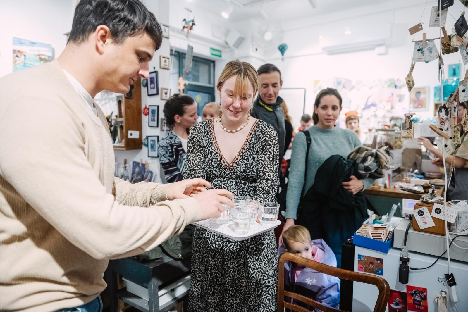 Ide tényleg hazaérkezik a vendég, a kellemes kávé- és süteményillatban a szeme is eltelik a sok kis kinccsel. Jelenleg nagyjából harminc alkotóval dolgoznak együtt, akiknek időnként pop-up kiállítást rendeznek, munkáik pedig baráti áron megvásárolhatók,