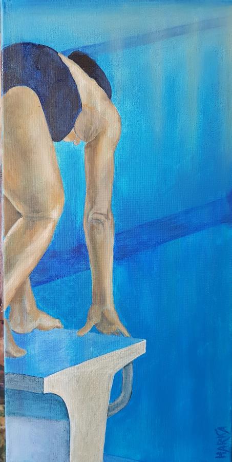 Hatalmas, kék árnyalatokban vibráló vászon előtt foglal helyet erzsébetvárosi műteremlakásában Harka Ágnes képzőművész, kinek képén mintha tenyérlenyomatok is kirajzolódnának. Nem káprázat, erősíti meg, hiszen gyakran puszta kézzel alkot, akárcsak Rembrandt. A fluxus, a folyamat izgatja, alkotás közben szinte módosult tudatállapotba kerül. – Hedonista vagyok, az örömre igyekszem fókuszálni. Mindent megfestek, ami megérint a létezésével, vagy aminek érzékelem a hiányát, vannak nagyon konceptuális munkáim is. Nem végeztem tanár szakot, amikor a képzőművészeti egyetemre jártam. Úgy voltam vele, hogy nekem kérdéseim vannak, és ha tanítanék egy katedrán, tekintélyszemélyként, akkor válaszokat kellene adnom, a kérdéseim befagynának, és nekem a kérdések fontosabbak. Már csináltam ezt egy ideje, amikor éreztem, hogy ki kell mondanom, hogy én tanítani szeretnék. Elmentem a csillaghegyi Banán Klubba, elmondtam, hogy én ezt szeretném, és kezdőként ingyen kaptam egy termet egy évre, nagy szerencsém volt – mesél a kezdetekről.