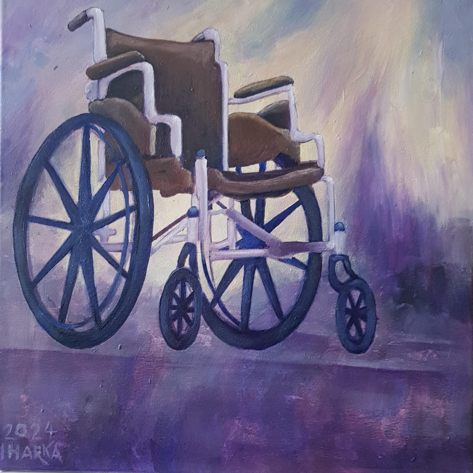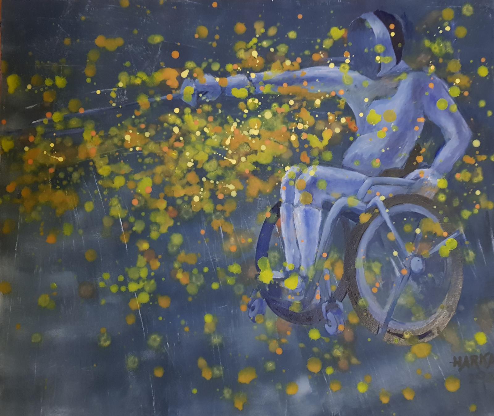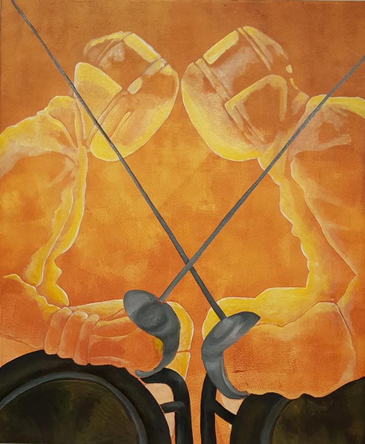 Nála is szépen megférnek egymás mellett a falon a régi, klasszicizáló családi festmények és a színpompás kortárs művek. Köztük azok a portrék, amiket kerekesszékes sportolókról festett. „A környékén volt egy faültetés, ahol rengeteg, fogyatékkal élő ember gyűlt össze.