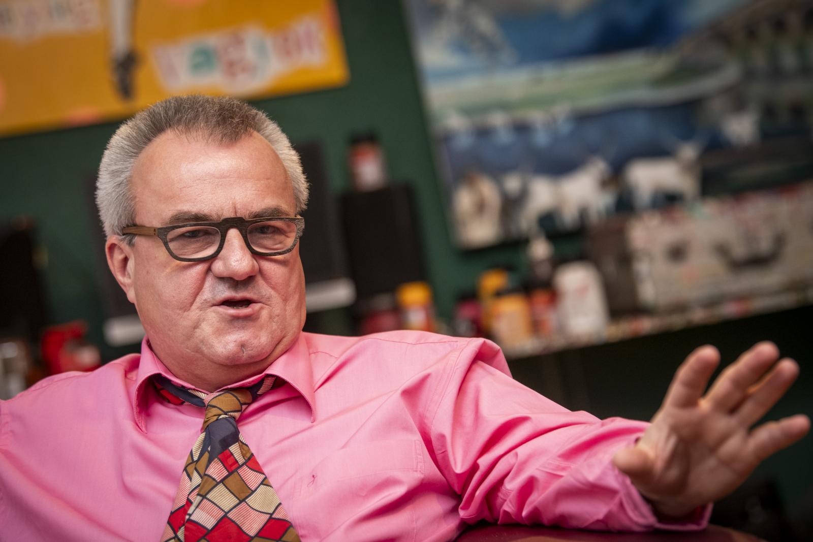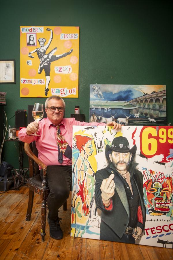 – Körülbelül negyven éve festek, és a művészetem kialakulásának több fázisa volt. Valamikor tinédzserként még graffitis, art brut stílussal kezdtem Újvidéken, az egykori Jugoszláviában, ahol egy garázsban festegettem sprével, meg kentem, csurgattam a festéket, nagy képeket csináltam. Aztán meditatívabb, befelé forduló, filozofikusabb műveket készítettem, aztán amikor a délszláv háború miatt arra kényszerültem, hogy elmeneküljek a hazámból, arra jutottam, hogy az egyén nem tudja elkerülni a társadalom és a történelem hatását. Ezért egyre inkább szociológiai kérdésekkel kezdtem el foglalkozni, eleinte csak metaforikusan az egyén és a környezete relációjában, majd a kétezres évek elejétől már konkrét személyeket és témákat jártam körbe, például a magyar és a nemzetközi történelmet és politikát. A jövőben szeretnék egy nagyszabású kiállítást rendezni, melyen a különböző korszakaimat párhuzamosan bemutathatom, így akik csak az újabb kori művészetemet ismerik, azok is láthatnák, honnan indult ez a történet negyven éve, és haladt fokozatosan egy társadalmi-közéleti megnyilatkozás felé.
