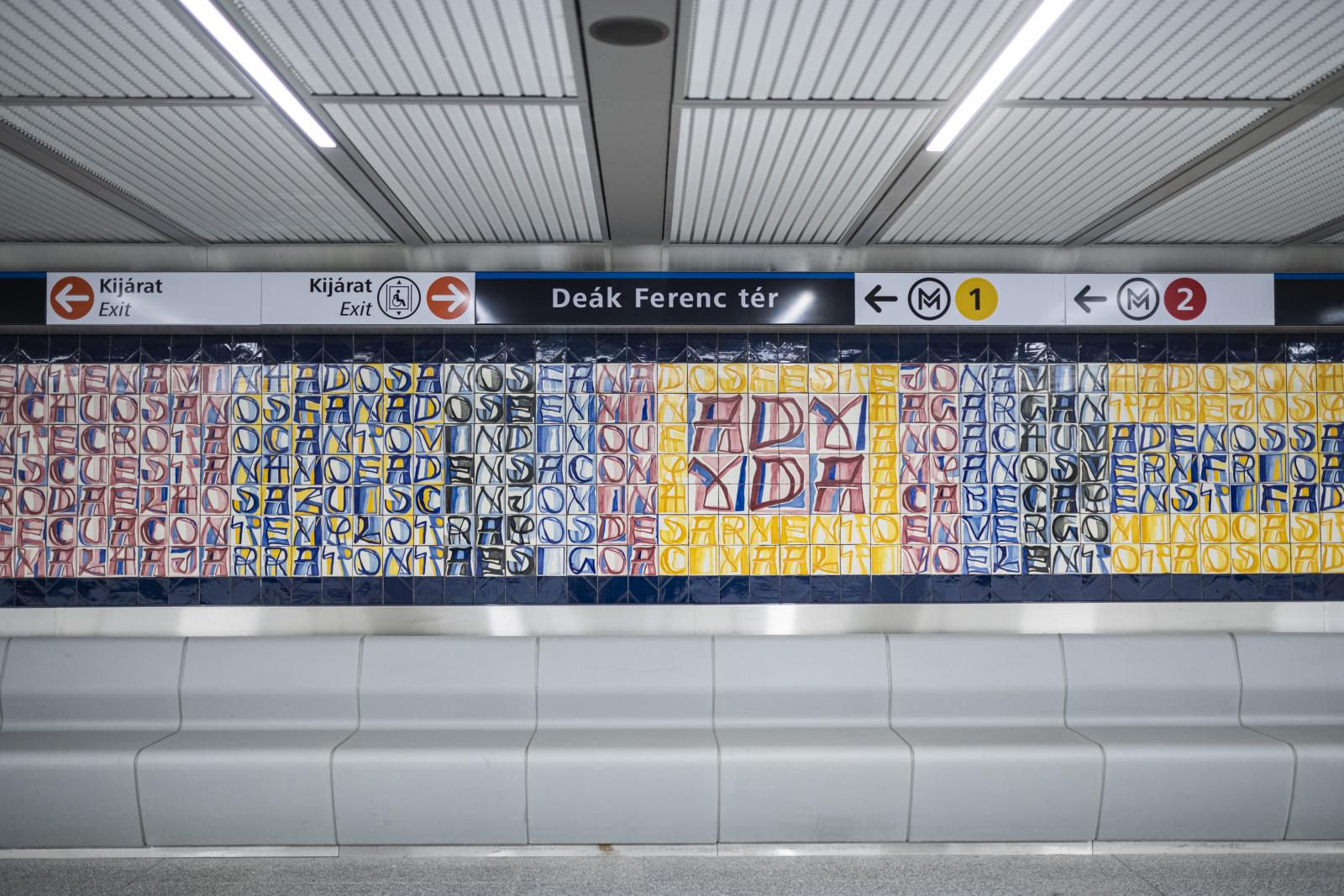 A mozaikok egy portugál képzőművész, Joao Vieira alkotásai. Az egyik oldalon magyar költők – József Attila, Ady Endre és Petőfi Sándor – verseinek részleteit betűzhetjük ki portugál fordításban. Így már érthető, hogy az egyik szöveg miért úgy kezdődik balra fent, hogy „No Danubio”, azaz „A Dunánál”. A másik oldalon pedig portugál költők – Pessoa, Camões, Cesario – írásait betűzhetjük ki magyar fordításban. Szerencsére a metró felújítását követően megmaradtak eredeti formájukban a mozaikok, így továbbra is a Deák tér emblematikus látványossága között tartjuk számon.