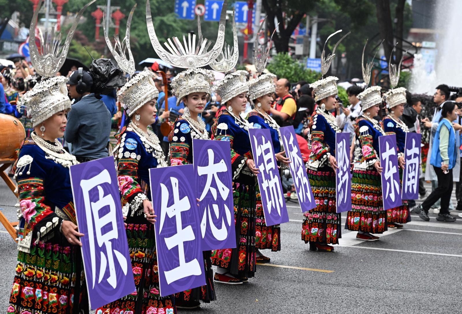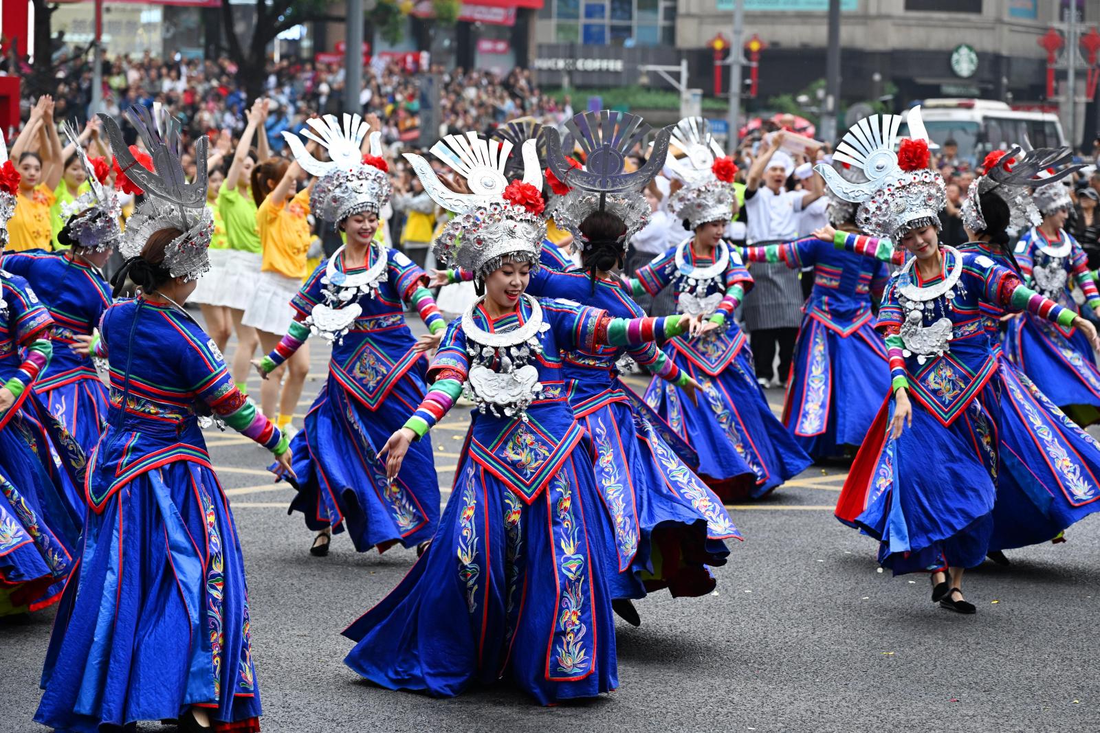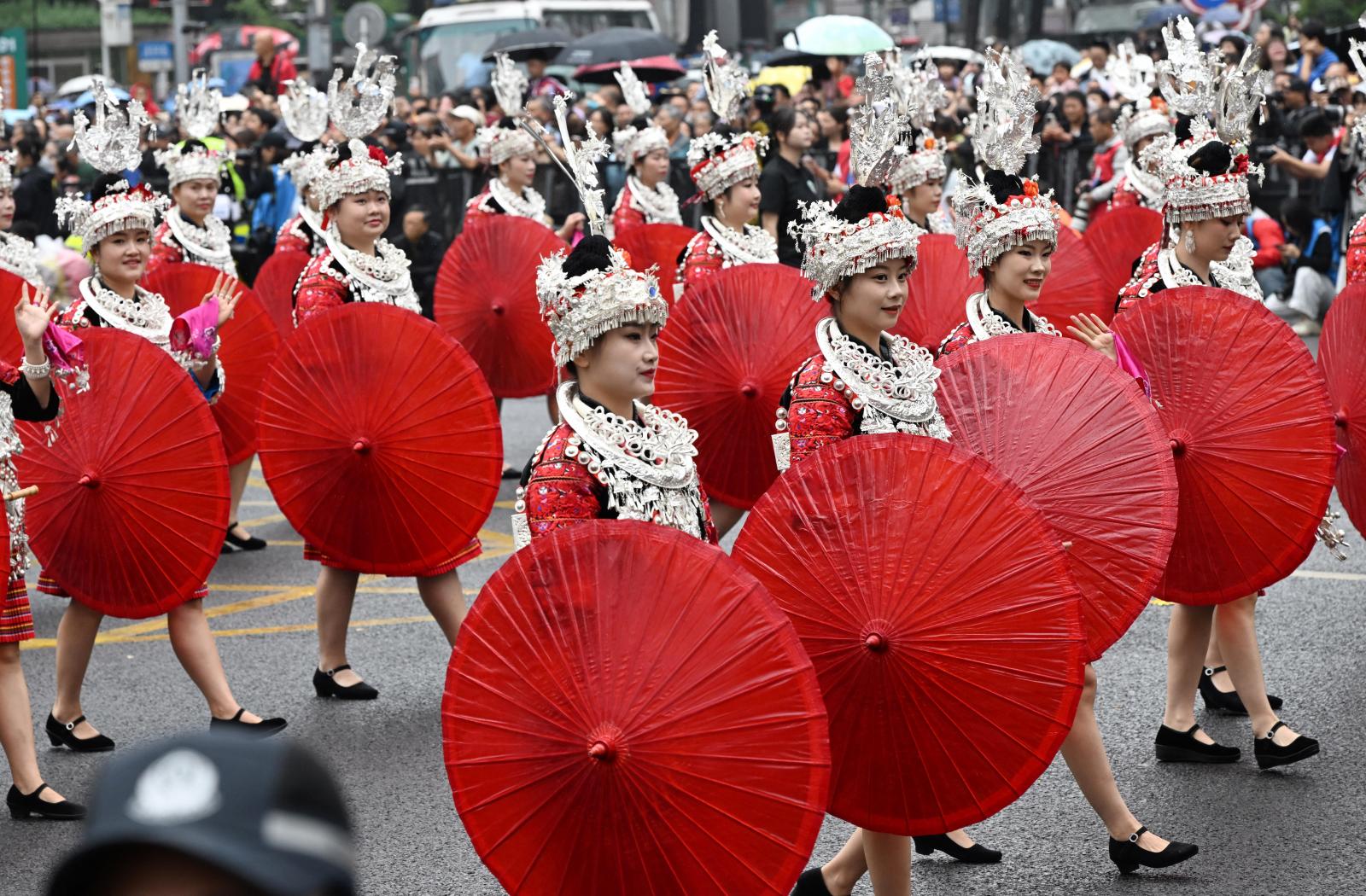 Legalább 3600 résztvevője volt annak a parádénak, amelyet a délnyugat-kínai Kujcsou tartomány fővárosában, Kujjangban tartottak a kínai turizmus napja tiszteletére.