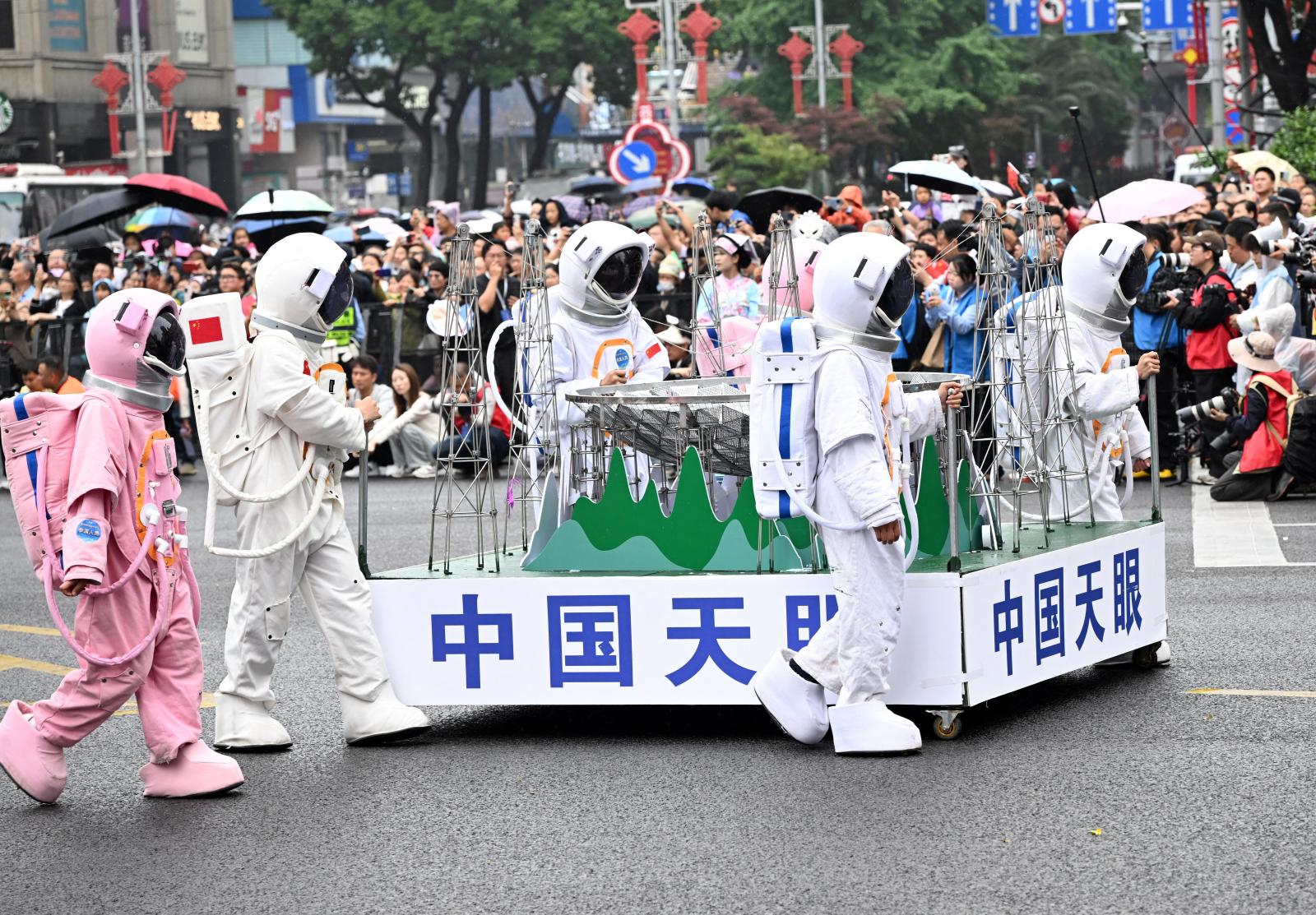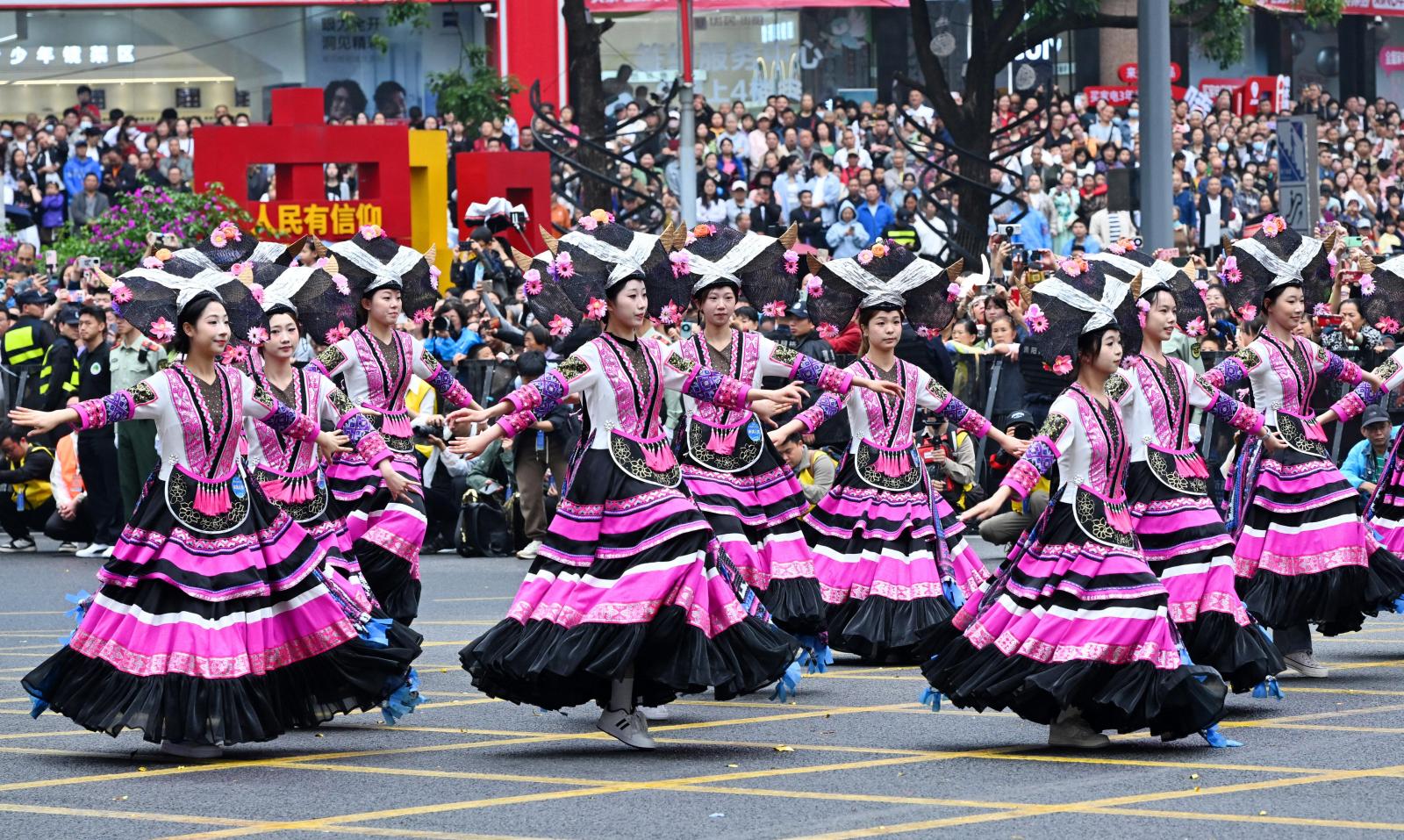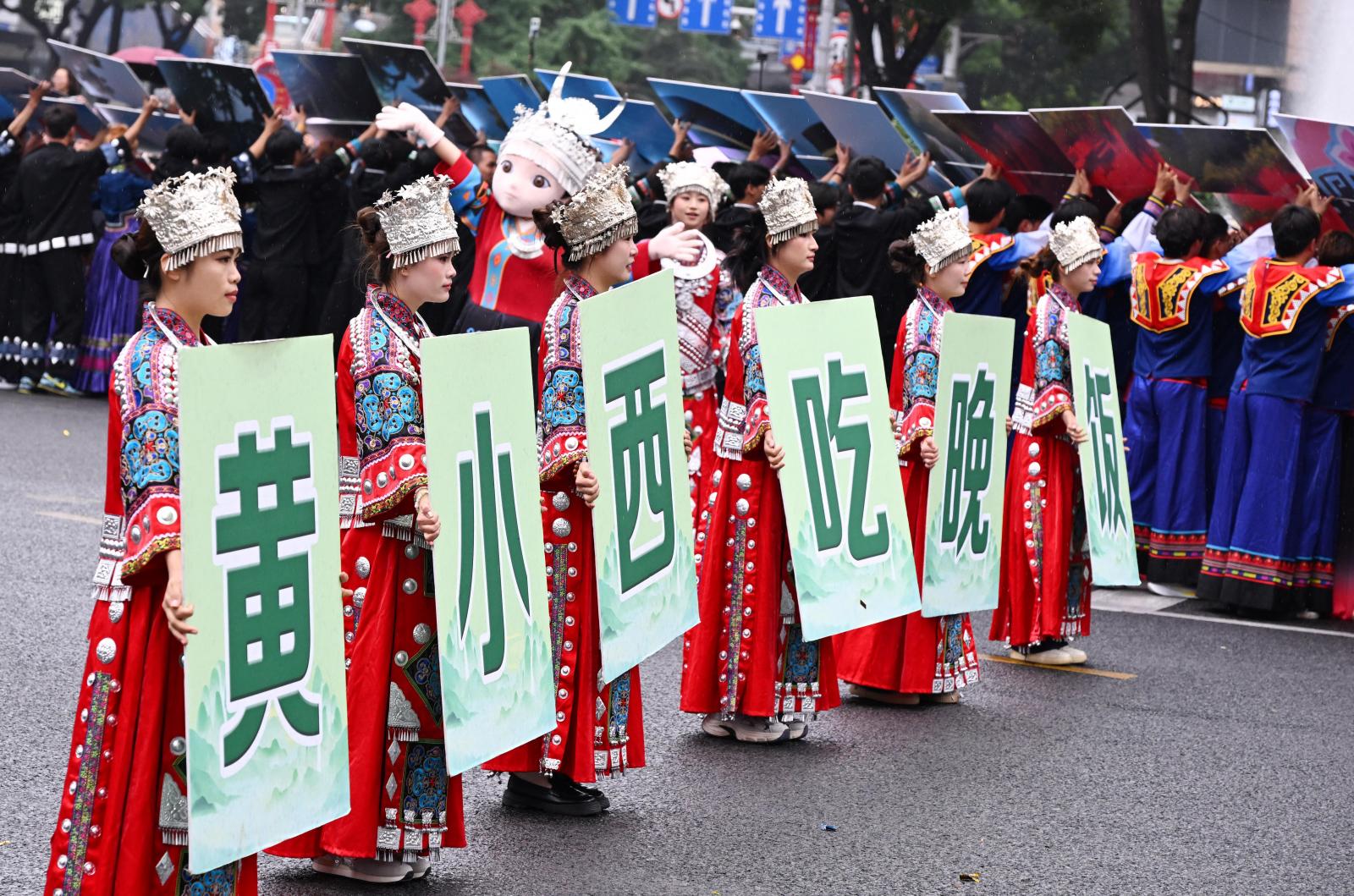 Legalább 3600 résztvevője volt annak a parádénak, amelyet a délnyugat-kínai Kujcsou tartomány fővárosában, Kujjangban tartottak a kínai turizmus napja tiszteletére.