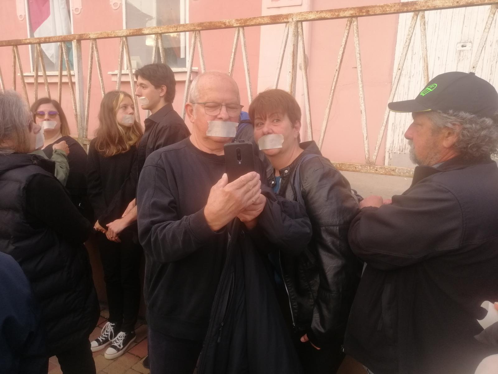 A csendes demonstráció során mindössze egyszer forrt fel az indulat. Egy férfi úgy gondolta, felolvas egy HVG-cikket, az egyik szervező megkérte, hogy ezt ne tegye, mire egy demonstráló hangosan kikérte magának, hogy belefojtották a szót a férfiba. Az aHang részéről Mészáros Andrásné lapunknak azt mondta, bármennyire is szólásszabadság van, egyrészt velük nem egyeztetett az illető, másrészt nem gondolják, hogy vállalni tudják, amit elmondott. Civil rendezvényt hirdettek, a politikával átszőtt gondolatokat nem érezték oda illőnek. Még ha ez valakinek nem is tetszett, ez akkor is az ő rendezvényük volt, szögezte le.