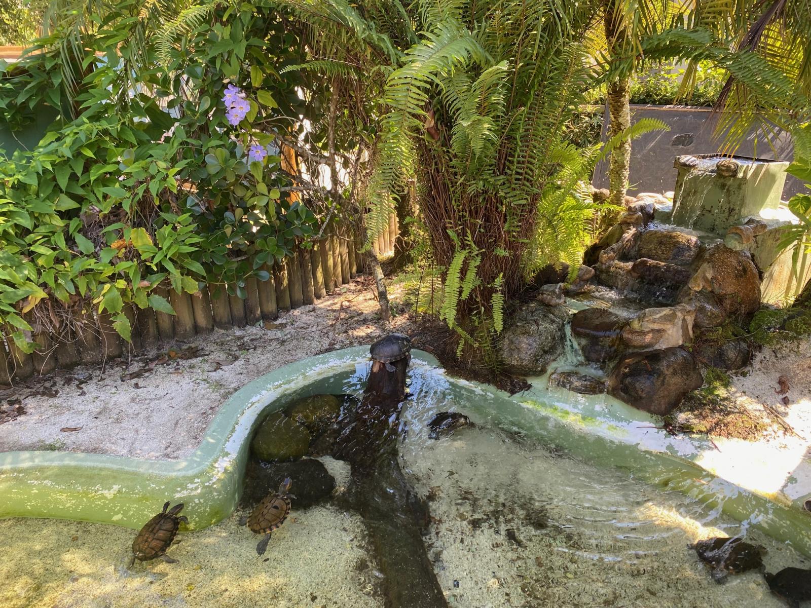 Mivel külső szemmel többségük egészségesnek tűnik, őket először szkeptikusan, sajnálkozva néztük azt gondolva, hogy csak a látogatók, potenciális támogatók miatt élnek így, és hát egy medencében élni az óceán után olyan lehet, mint egy embernek börtönbe kerülni. Aztán mellénk szegődött a szervezet egyik dolgozója, egy fiatal tengerbiológus lány, aki a különféle szárazföldi és tengeri teknősök között vezetve mindegyik fajról mondott valami érdekességet, egyes példányokra rámutatva pedig azt is megindokolta, miért tartják őket a látogatóközpontban, medencékbe „zárva”.