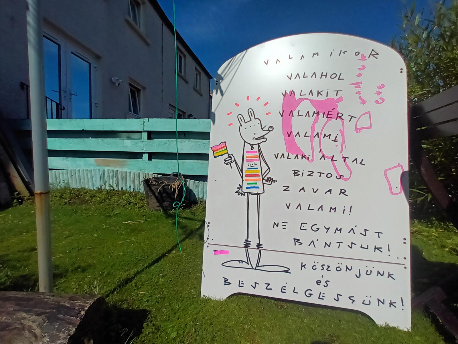 Fekete Valér Sior Skóciában élő karikaturista-graffitis szerzőnk történelem–francia szakos tanárként ment el családjával az országból közel kilenc éve. Általában a hét minden napján dolgozik. Konyhán főz, épületet bont, kertben vág rendet. Vagy éppen megrendelésre dekorál, az étterem kirakatától az iskola bejáratáig.