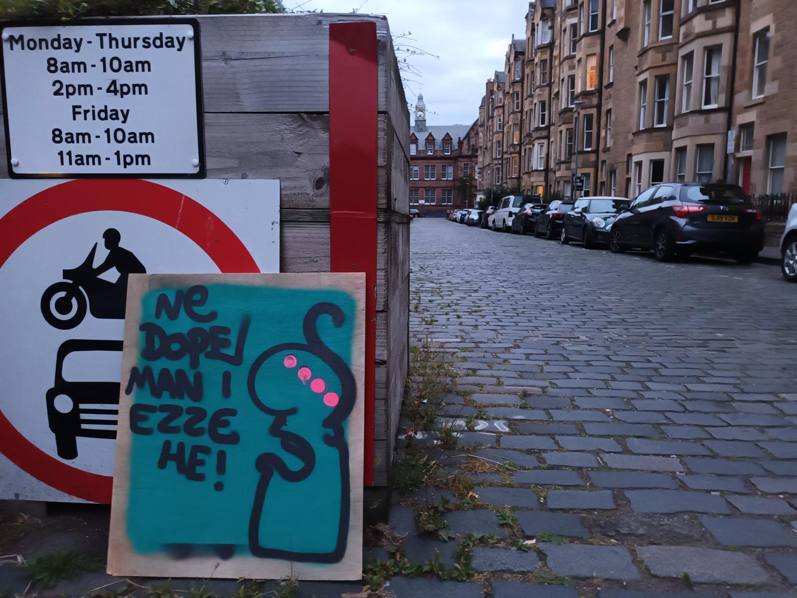 Fekete Valér Sior Skóciában élő karikaturista-graffitis szerzőnk történelem–francia szakos tanárként dolgozott itthon, közel egy évtizede ment el családjával Magyarországról. Amikor éppen nem az ügyfélköre megbízását teljesíti kertben, ház körül, akkor rajzol. Figyeli a közéletet, a politikát, és ami minderről eszébe jut, abból alkotás születik filccel, spray-vel, papíron, falon, deszkán.