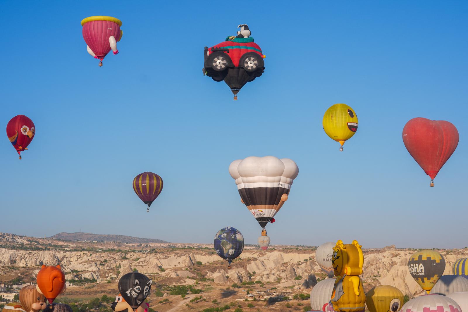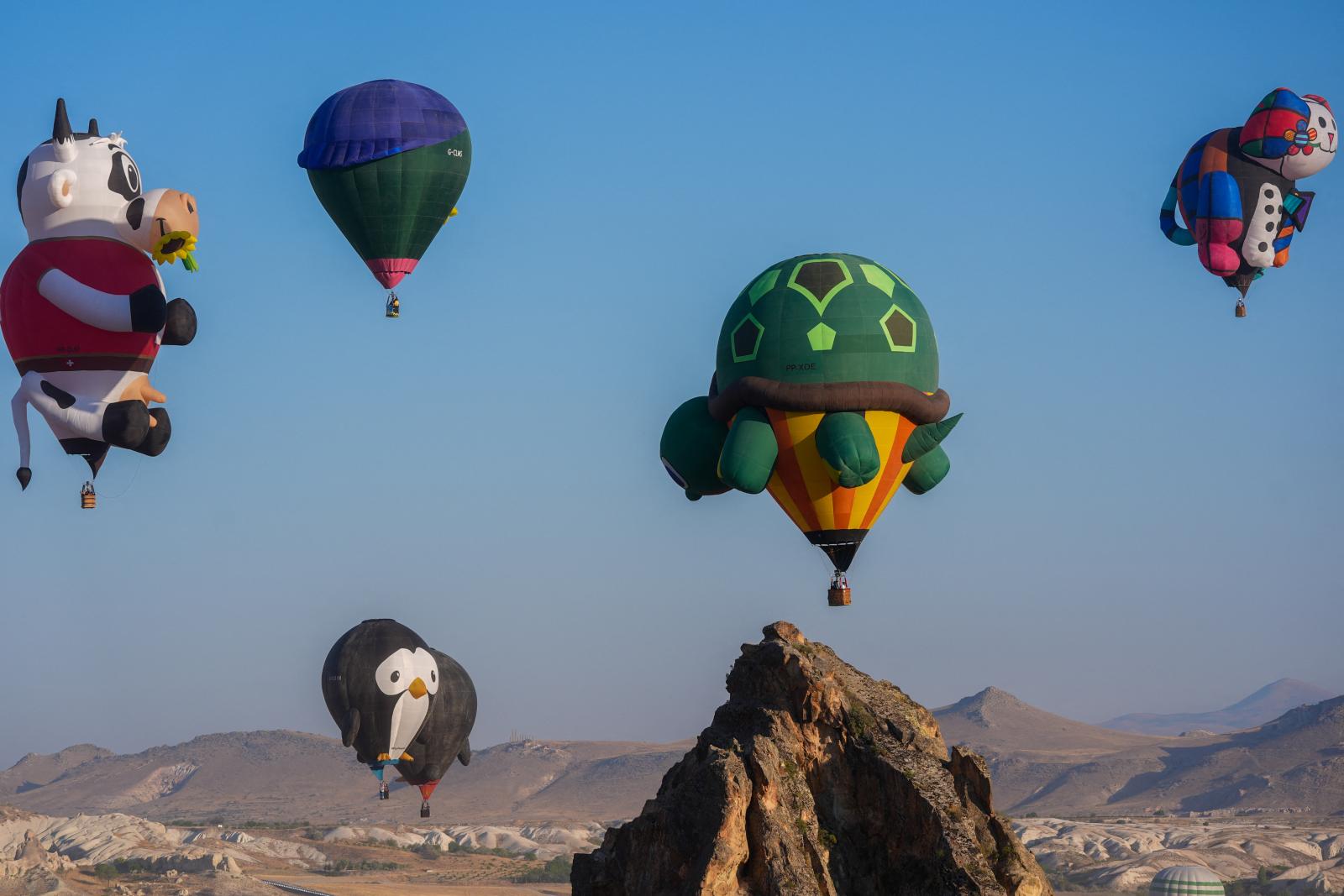 A törökországi Kappadókiában, Nevşehir tartományban négy napon át 38 különleges formájú hőlégballon emelkedett a magasba 27 különböző országból, színes forgataggá varázsolva a tündérkéményeknek nevezett sziklaalakzatok feletti égboltot.