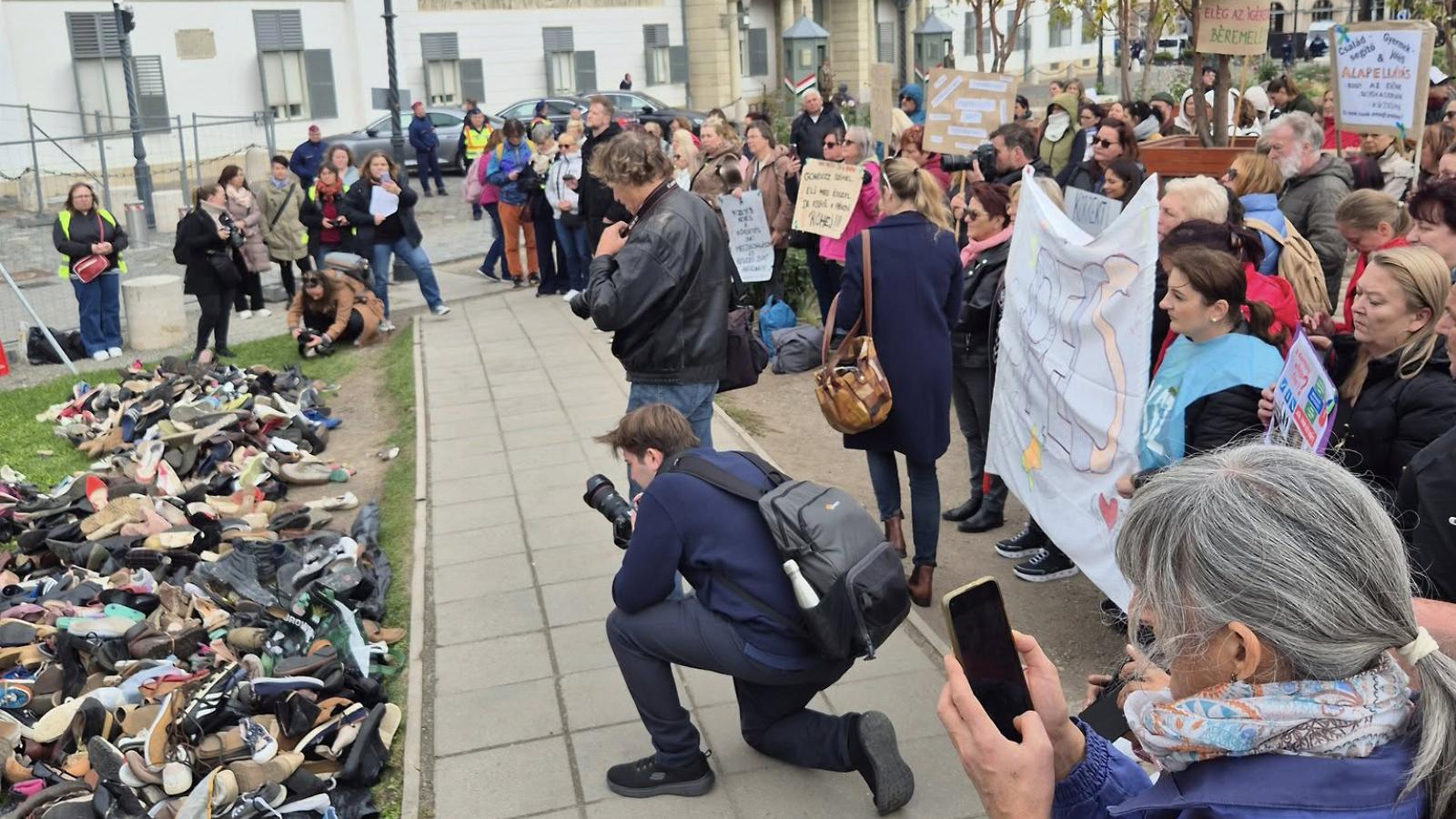 A fideszesek leszavazták a gyermekvédelmi dolgozók béremelését és az állami gondozott gyermekek étkeztetésére fordítható keret emelését is a parlamenti bizottságbanBoros Péterné, az MKKSZ elnöke a lyukas cipőket szegénységi bizonyítékoknak nevezte, amelyt az országszerte gyűjtöttek össze az ágazat munkavállalói. – Nem telik Birkin táskára, helikopterezésekre, de a dolgozók nem is luxizásra vágynak – mondta a szakszervezeti vezető, aki a béremeléseken túl azt is követelte, hogy legyen munkavállalói szószóló a parlamentben, aki képviselné dolgozók érdekeit. A jelenlévők közül többen is megemlítették, hogy Orbán Viktor már tavaly megígérte a szociális és gyermekvédelmi dolgozói bérek rendezését, de nem tartott be semmit.