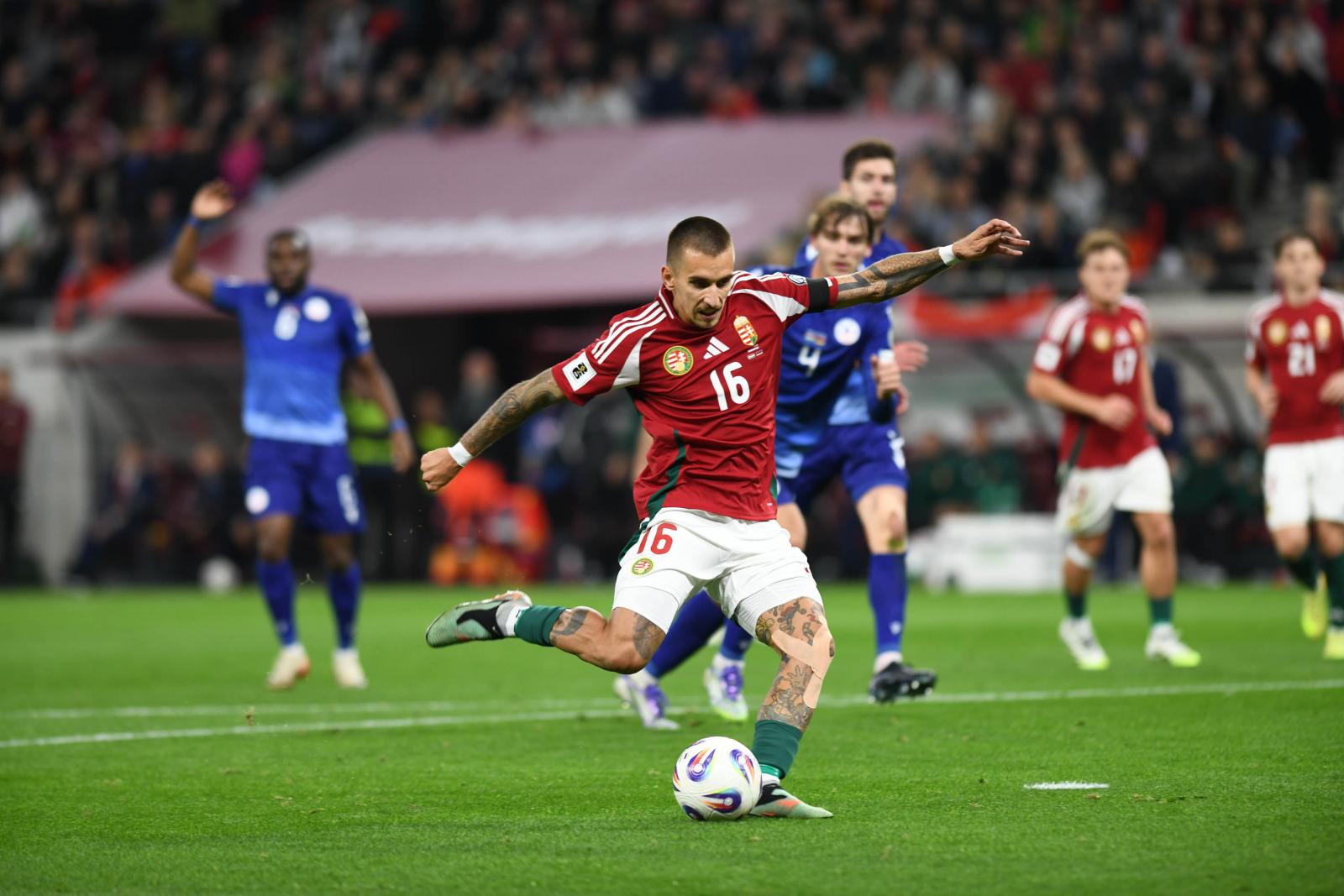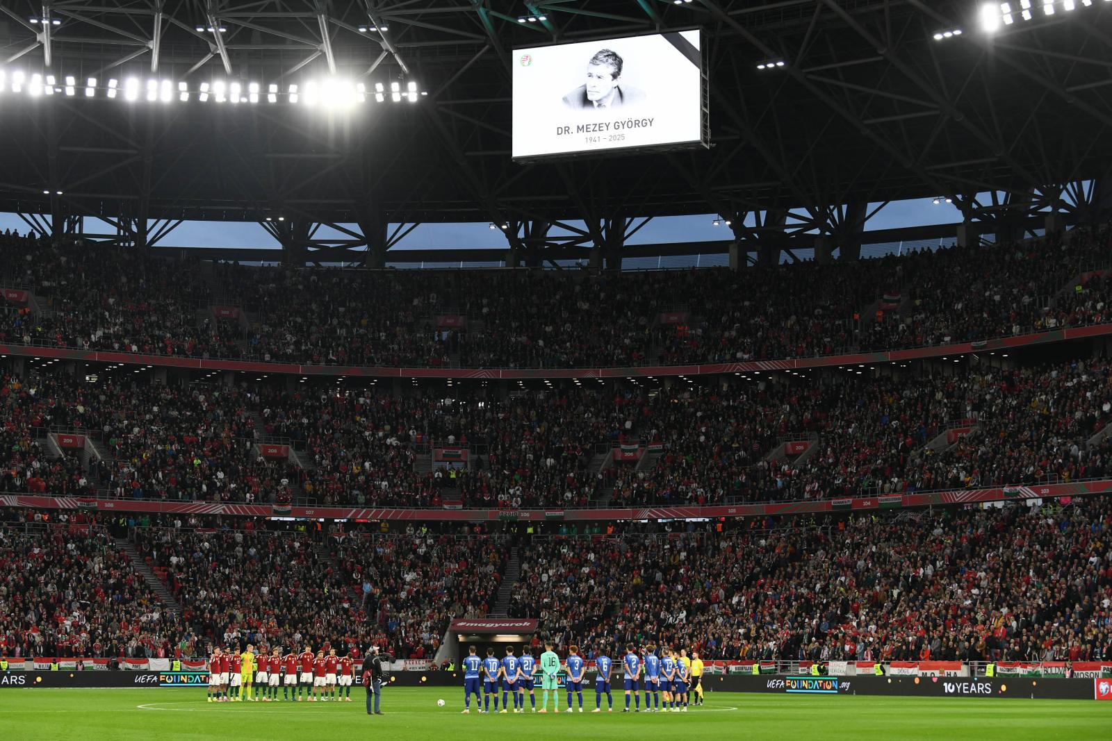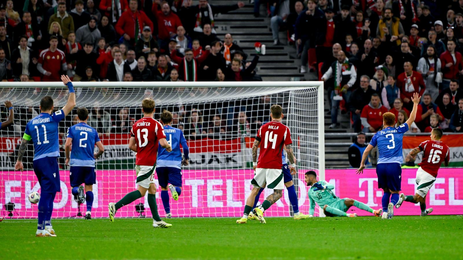Meghalt Mezey György korábbi szövetségi kapitány, akinek vezetésével a magyar válogatott kijutott a 1986-os világbajnokságraAz első perctől a magyar csapat irányította a játékot, míg az ellenfél egyértelműen gyors ellentámadásokra rendezkedett be. Marco Rossi szövetségi kapitány tanítványai nem diktáltak öldöklő tempót, inkább türelmesen járatták a labdát, így keresték a rést az örmény védelmen. Tíz percet kellett várni az első helyzetre, amely nem kidolgozott akcióból alakult ki, hanem Szoboszlai labdaszerzését követően Lukács próbálkozhatott tíz méterről, de a vendégkapus lábbal hárított. Az első végigvitt örmény támadás végén aztán Tóthnak is védenie kellett. A játékrész derekához közeledve mezőnyjátékkal teltek a percek, a magyarok nem igazán tudtak az ellenfél védelme mögé kerülni, ehhez túlságosan statikus volt a játékuk, hiányzott a kreativitás és a dinamika a támadásokból. Éppen ezért a második kaput eltaláló hazai kísérlet csak a 34. percben volt, akkor Lukács kiszorított helyzetből leadott lövését védte Avagjan. Az első igazán tetszetős akciót nem sokkal a szünet előtt vezette a válogatott, amikor Bolla remek jobb oldali beadására hiába érkezett kiváló ütemben Szoboszlai, a Liverpool sztárja eltévesztette a bal alsó sarkot. A magyar csapat így hiába birtokolta háromszor annyit a labdát az első félidőben, nem tudott előnyt szerezni a szünetig.