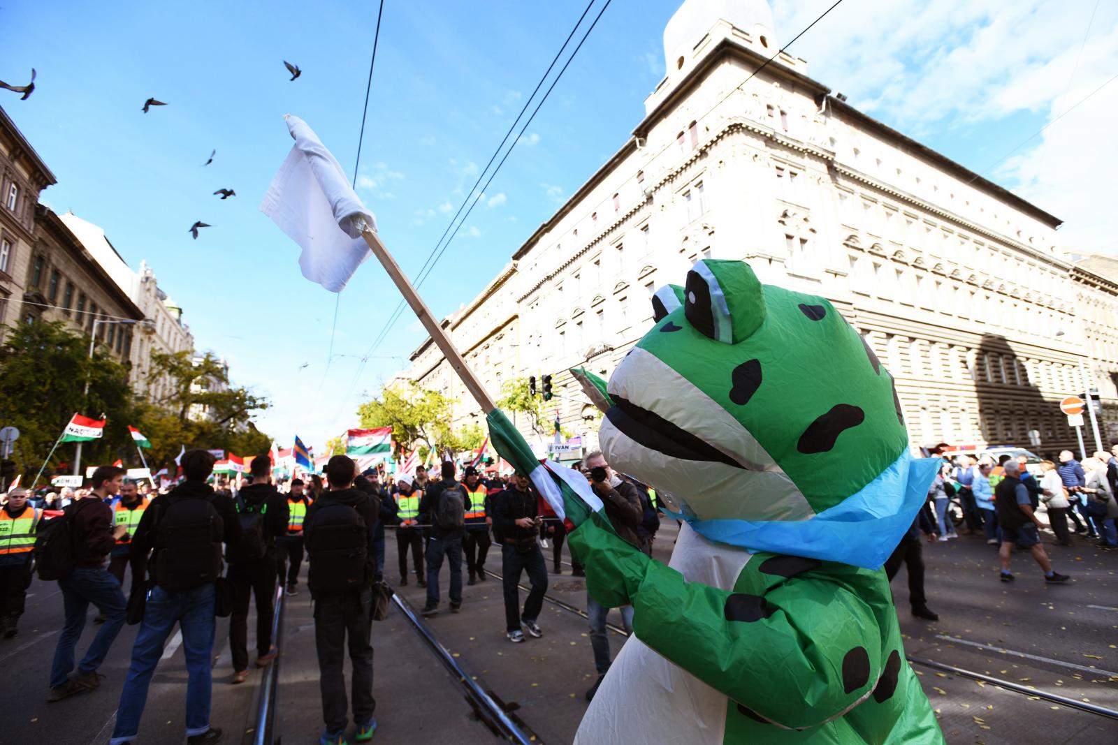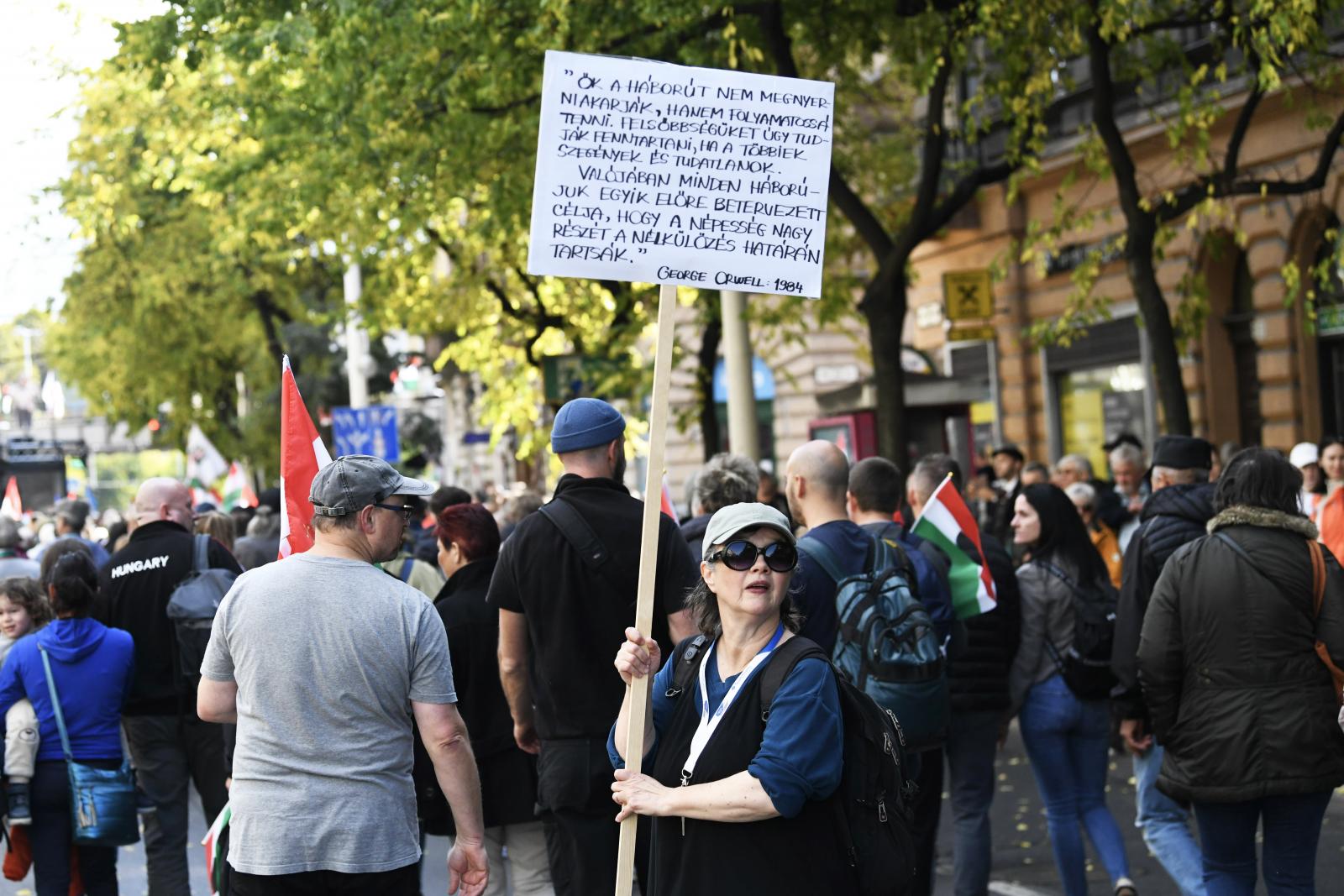 A Margit híd budai hídfőjénél már másfél órával a Békemenet kezdete előtt sor kígyózott a pultnál, ahol a „Mondjunk nemet a háborús tervekre!” címmel gyűjtöttek aláírásokat. Pár méterrel odébb népi zenekar húzta, kicsit távolabb a Nélküled szólt egy hangszóróból. A fideszes idillt legfeljebb a park járólapjaira festett, O1G-vel dekorált felirat zavarhatta meg: „Pedofidesz, Semjén, Zsolti bácsi”.