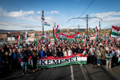 Október 23-án ismét Békemenetet rendezett a Fidesz-közeli civil szervezet, a CÖF-CÖKA Budapesten. A felvonulás az Elvis Presley térről indult a Margit hídon át a Kossuth térre, a résztvevők egyike mondta kollégánknak, hogy ha kell, négykézláb is végigmegy. Fotógaléria.