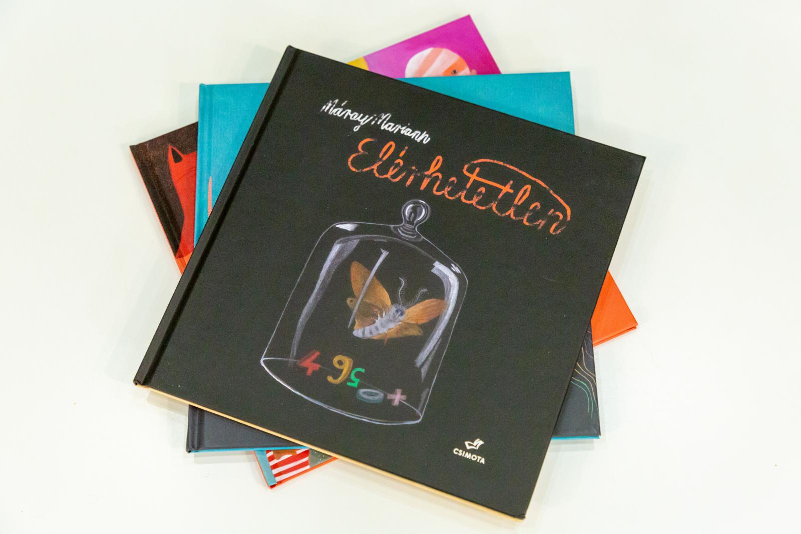 A csendeskönyvek egészen elvont témákat is képesek megjeleníteni és átadni az olvasónak. Ilyen Mariann autizmusról szóló, Elérhetetlen című könyve, melynek főszereplője egy üvegbúra alatt növekvő fiú, aki anyukáján kívül nem enged be mást a kis „birodalmába”, de azért a képzeletbeli lepkéi nyugodtan szálldogálhatnak ott. Sőt, a búrában ő maga is szeret lepkévé alakulni, de ha ezt a búrát leemelik róla, akkor félni kezd, mert a többi ember és a nagyvilág zaja megijeszti őt. Jobbnak látja hát, ha egyedül marad, és inkább matekozik, a számokkal amúgy is jól meg lehet tölteni ezt a saját helyet. Az utolsó képen azonban egy másik fiú is feltűnik, aki szintén egy búra alatt él, ám nála nem számok vannak a búra alatt, hanem mindenféle szín, ő ugyanis festőnek készül. A két fiú pedig barátságot köt, és a főszereplő megengedi a másiknak, hogy belépjen a búrájába, ahol ő matekozik, míg a másik fest.– A történetemmel nem az volt a célom, hogy elmagyarázzam, mit jelent az autizmus, hiszen sok ilyen könyv létezik. Hanem lírai szempontból akartam megközelíteni ezt a témát, hogy átélhetővé tegyem az olvasó számára – mondja az illusztrátor. Ezért is van jelentősége annak, hogy a történet elején a búrába csak az anyuka és a család kutyája tud bemenni, hiszen nekik a fiú meg meri mutatni a világát, míg másoktól elzárkózik.