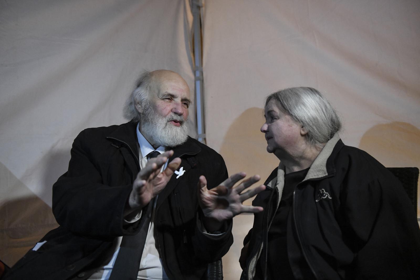„Iványi Gábor a szívünk csücske” – ezzel az egyszerű magyarázattal szolgált egy nyugdíjas asszony, amikor arról kérdeztük, miért érezte fontosnak, hogy lánya társaságában jelen legyen a Dankó utcai fáklyás tüntetésen.
