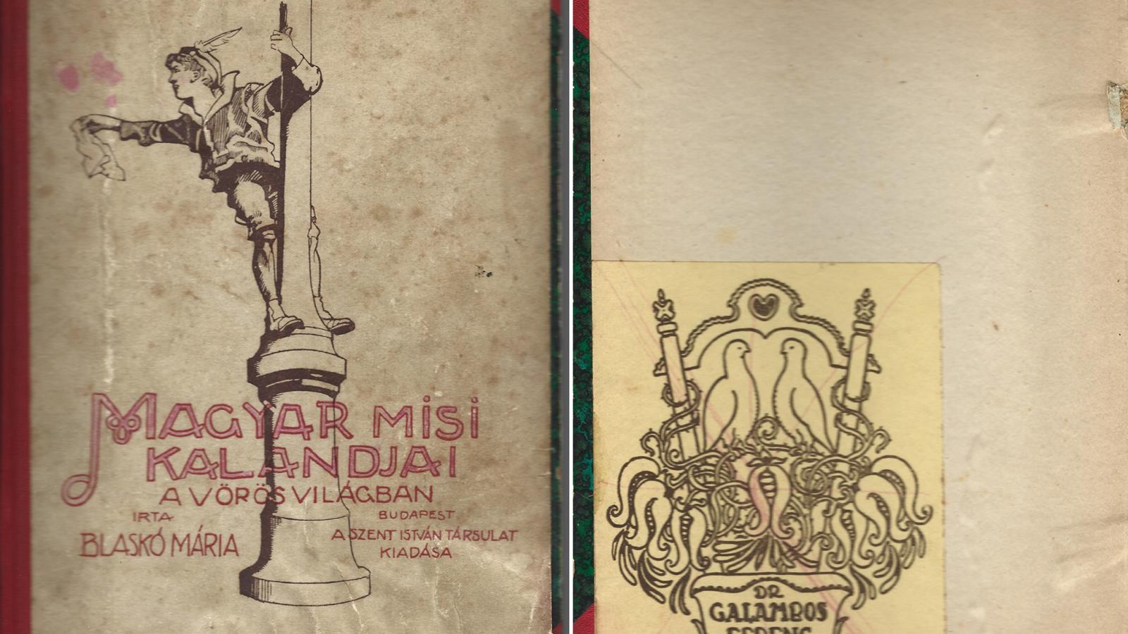 A Magyar Misi példányai eközben viharos gyorsasággal koptak ki a gyermekkönyvtárakból, de lám, nem mindegyik lett az enyészeté. Az adományboltba keveredett darab a beleragasztott ex libris tanúsága szerint először dr. Galambos Ferenc tulajdona volt: az Andrássy úti ügyvéd hivatására nézve csődügyleteket bonyolított le vagyonfelügyelőként, de aktív volt a katolikus közéletben is – a Gárdaházra például 200 koronát adományozott 1925-ben. Hogy az ő polcáról miként kelt útra a könyv, azt persze nem tudom; de az biztos, hogy 1946. szeptember 2-án már Rákospalotán volt.