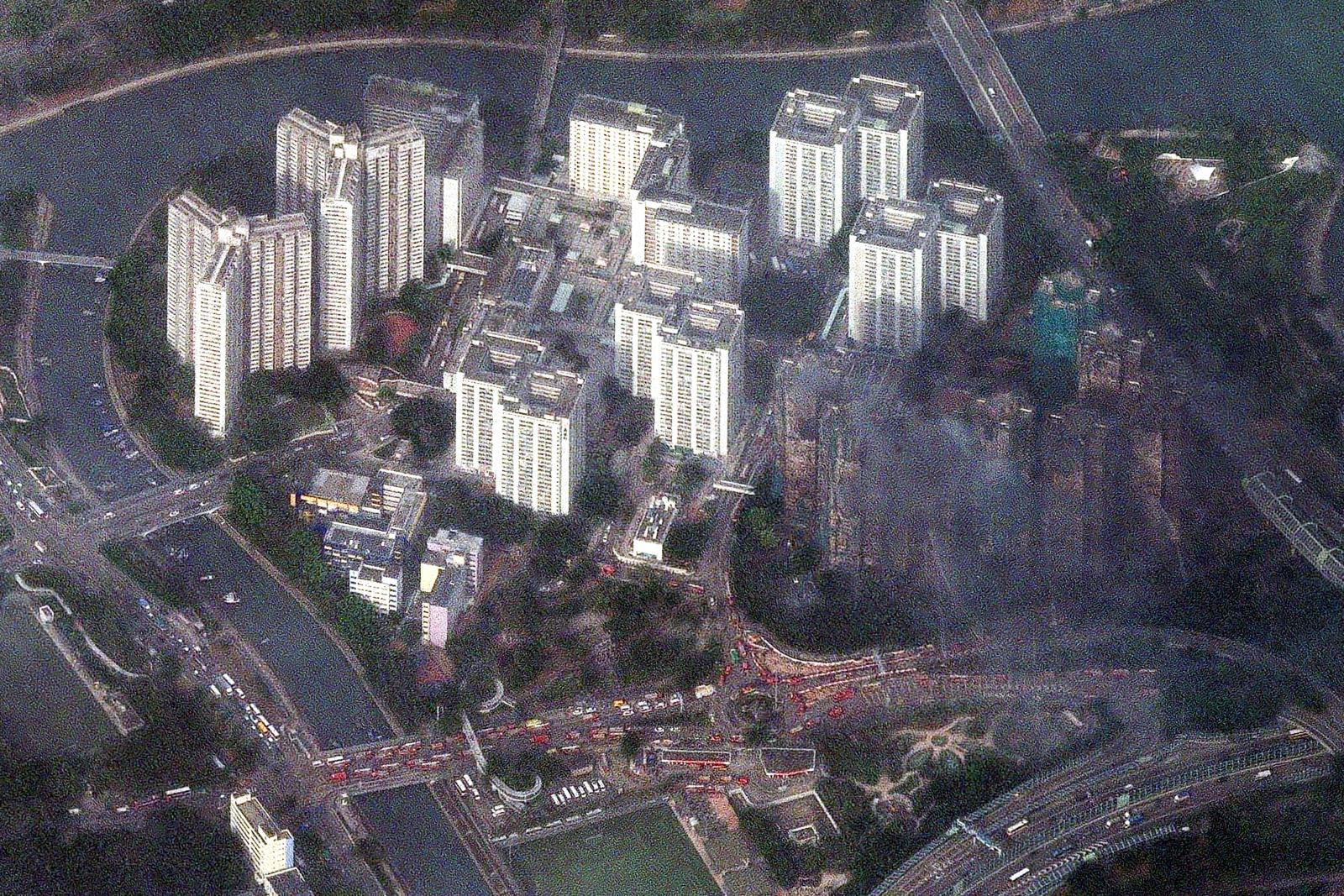 A lángok egy felújítás alatt álló lakókomplexumban keletkeztek, amely nyolc, 32 emeletes épületből és csaknem 2000 lakásból áll, mintegy 4800 lakóval. Az épületeket kívülről bambuszállványzattal és zöld védőhálóval borították be, ami jelentősen felgyorsította a tűz terjedését.