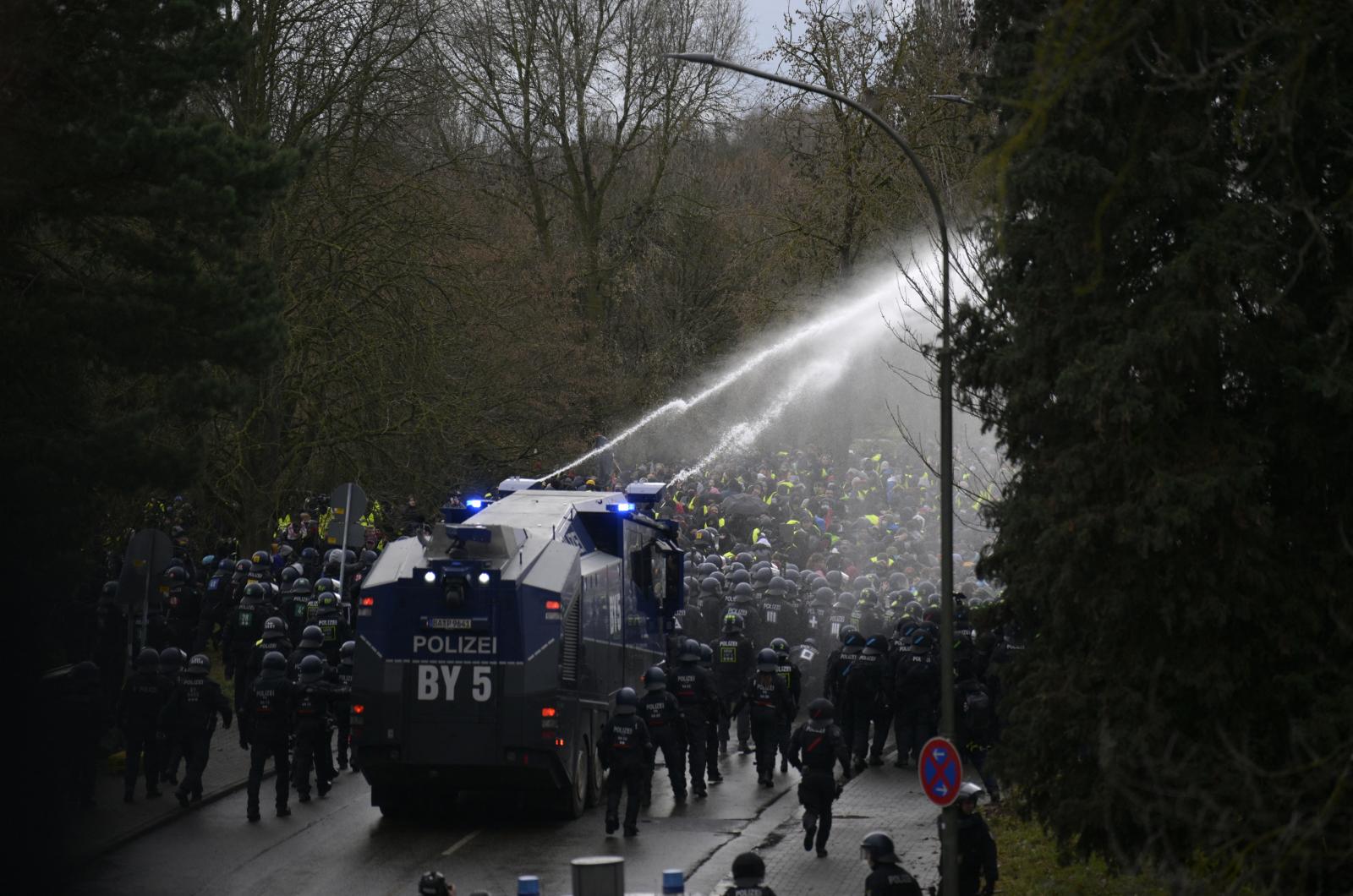 A tüntetők összetűztek a rendőrökkel, akik paprikaspray-vel és vízágyúval oszlatták a köveket dobáló tömeget, egy másik helyszínen pedig vízágyút vetettek be a mintegy kétezer tüntetővel szemben, aki elzárta a kongresszushoz vezető utat, és felszólítás ellenére sem távozott.
