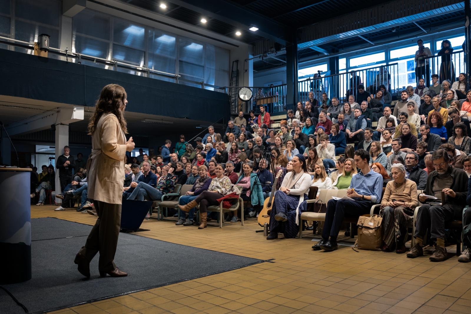A levegőben frissen főtt növényi teák illata szállt, miközben a kiállítók – köztük a Jane Goodall Intézet és a Tudatos Vásárlók Egyesülete – standjainál már reggeltől pezsgett az élet. A rendezvényt a házigazdák, Fait Federika, a zCast, HVG fenntarthatósági podcastjának és Litkai Gergely, a Zöld Válasz podcast műsorvezetői azzal vezették fel, hogy 2075-ben a klímaváltozás már nem fenyegetés, hanem múltbeli tanulság. „Környezeti lábnyomunk csökkentésére tudom ajánlani a fekvőgipszet” – ironizált a humorista, olyan oldott hangulatot teremtve, amelyben a hallgatók is egyre nyitottabbá, befogadóbbá váltak.