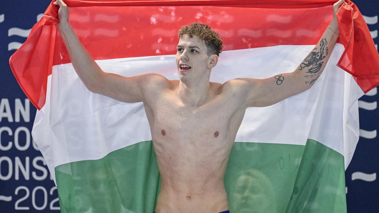 "Azt azért tegyük hozzá, hogy rövidpályán. Remélhetőleg egyszer ez majd nagymedencében is meg fog történni. Így hogy vb-t, Eb-t és világkupát is nyertem, kijelentem, hogy ez a kedvenc számom" - tette hozzá.