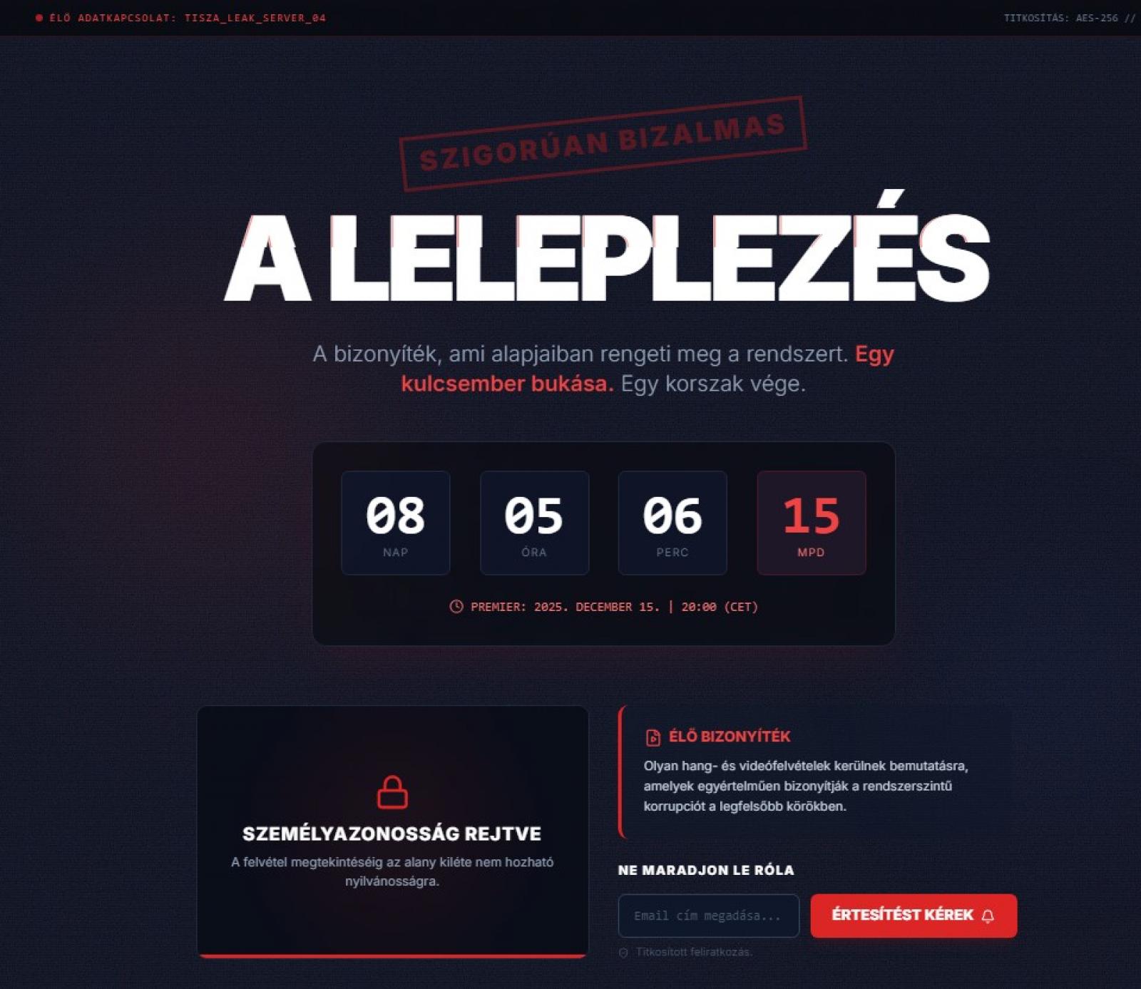A portál ezen túl egy olyan „leleplezést” ígér, amelyet 2025. december 15-én 20 órakor fog publikálni. „A bizonyíték, ami alapjaiban rengeti meg a rendszert. Egy kulcsember bukása. Egy korszak vége” - hangzik a kissé fellengzősnek ható állítás –, olyan hang- és videófelvételeket mutat be, amelyek „egyértelműen bizonyítják a rendszerszintű korrupciót” a legfelsőbb körökben.