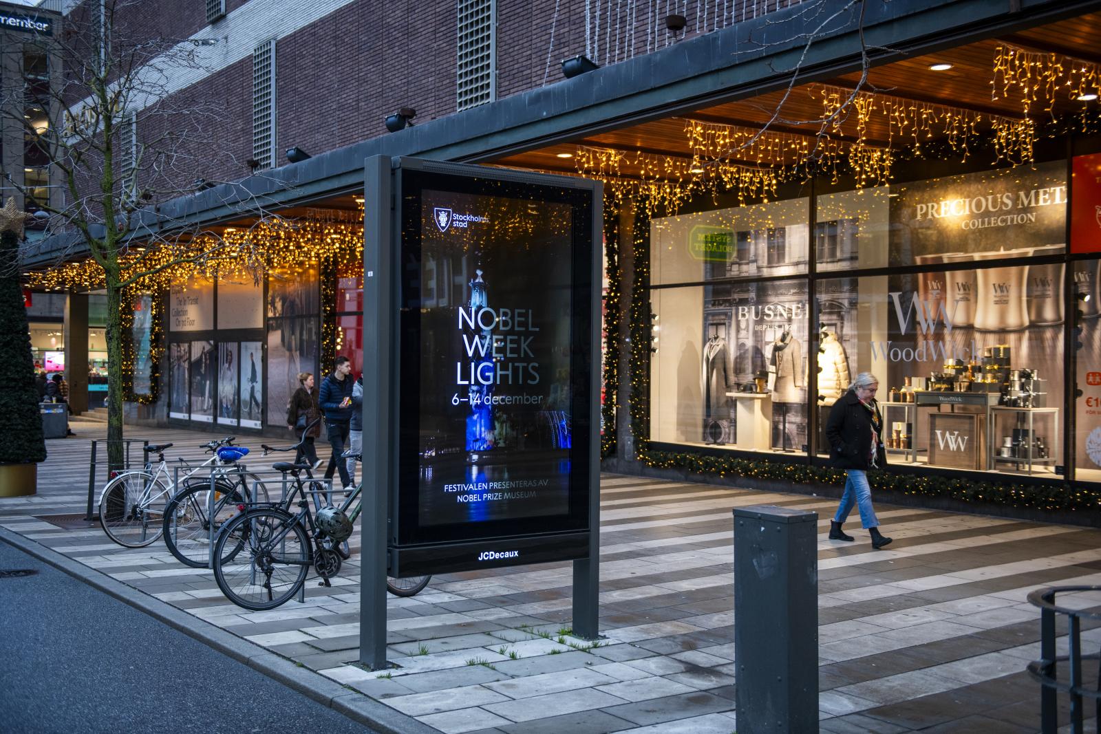 December van, ilyenkor délután már négy előtt koromsötét a stockholmi ég, valahogy kézenfekvő is, hogy a Nobel-hetet kísérje a belváros és Stockholm Tensta nevű nyugati kerületének egyes utcáin meglepetésként feltűnő fényjáték, a Nobel Week Lights. Ráadásul praktikus is, még az olykor szinte vízszintesen ömlő eső sem képes elmosni, hogyan tiszteleg a helyi és a világ számos pontjáról érkező művészvilág a Nobel-díjasok előtt. Idén a fényinstallációk nem konkrét személyeknek, hanem mindannak a szellemiségnek, talánynak és természeti törvénynek állítanak emléket, amelyek a Nobel-díjhoz vezettek.