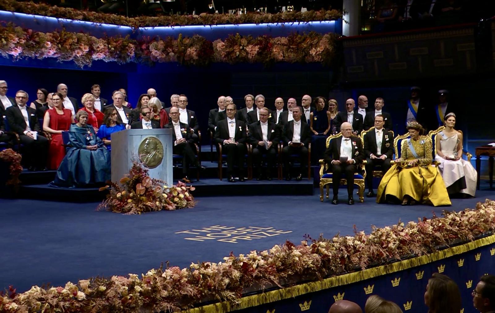– nyitotta meg a 2025-ös díjátadót Astrid Söderbergh Widding, a Nobel Alapítvány kuratóriumának elnöke. Beszédéből a hetekig tartó teljes hírzárlat után végül kiderült, nem vesz részt mindeközben a hagyományosan (Alfred Nobel végakaratának megfelelően) Oslóban átadott béke Nobel-díj ceremóniáján a jelenleg is hazája elnyomó rezsimje miatt életét kockáztató María Corina Machado, venezuelai politikus, aktivista. (Helyette lánya vette át a díjat.) Widding a világban dúló bizonytalansággal szemben beszédében a tudomány, az irodalom és a Machadóhoz hasonló békéért küzdők erejét méltatta.