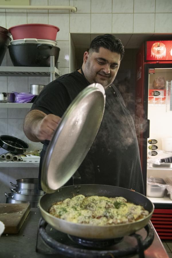 – Pacalos, töltött káposztás és csülkös pizzánk is van – mondja –, illetve van egy oldal az étlapon a Géza módra készült ételekkel, birkapörkölttel, babgulyással, pacallal. Csak a pizza nyújtásában nem veszek részt, de amúgy minden mást én főzök, és én felügyelek.