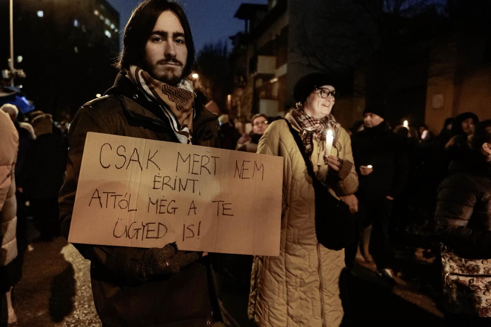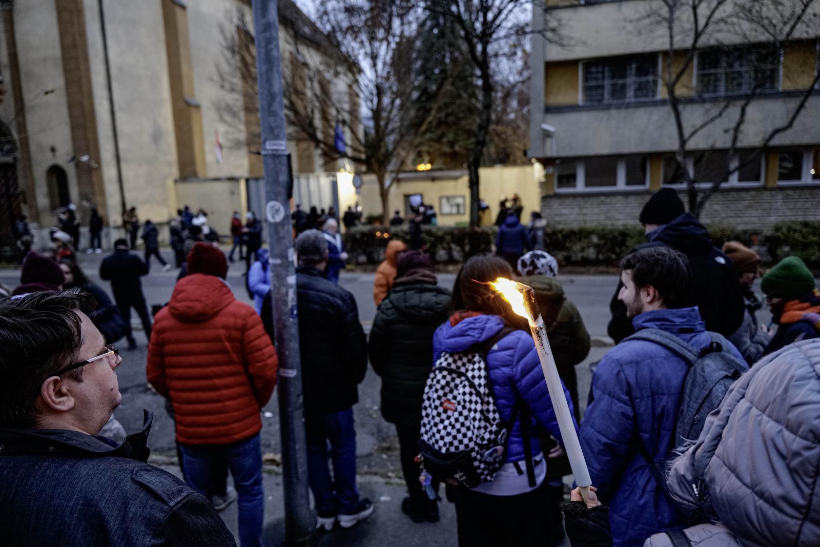 Beszédek nem lesznek, az intézmény bejárata előtt mécsesek égnek, az egész utcában szinte templomi csend van, ahogy a tüntetők a bejárat előtt leteszik a mécseseiket és mennek tovább, hogy helyet adjanak a következő résztvevőnek. A tömegben Puzsér Róberten kívül megpillantottuk Jámbor András józsefvárosi-ferencvárosi parlamenti képviselőt, Dobrev Klárát, a Demokratikus Koalíció elnökét, Hadházy Ákost és azt a Juhász Péter youtubert is, aki a héten több videót is nyilvánosságra hozott az intézményben történt brutális gyerekverésekről.
