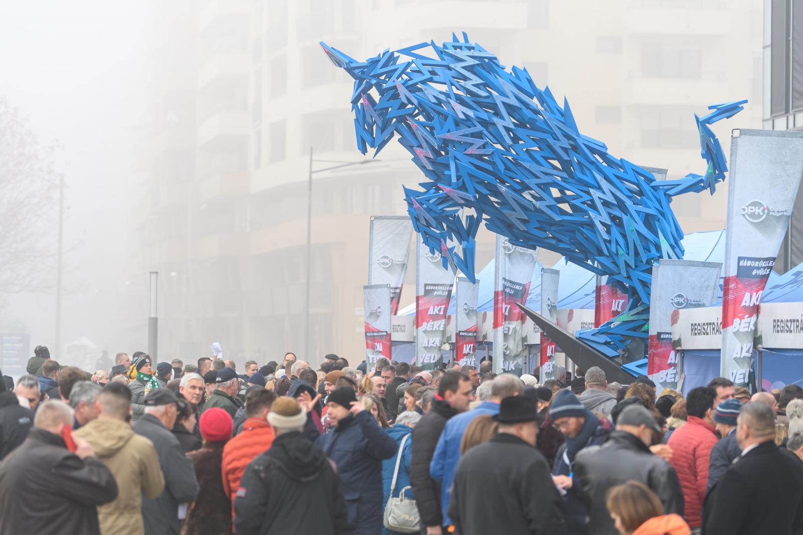 Valljuk és hisszük, hogy a választás kint, az utcán fog eldőlni - így konferálta fel a műsorvezető Szabó Zsófia az ezúttal is zárt helyen, a szegedi Pick Arénában biztonsági őrök és rendőrök, illetve terrorelhárítók tömegének vigyázó szeme előtt tartott utolsó 2025-ös DPK)-nagygyűlését, azaz rendhagyó Lázárinfóját. Ami szintén a szervezők szerint az eddig legsikeresebb gyűlés volt, a valóságban a Pick Arénának csak a felét töltötte meg: egy ezúttal is jórészt vidékről, illetve Vajdaságból és Erdélyből odabuszoztatott, 4-5 ezer fő közötti közönségről volt szó.