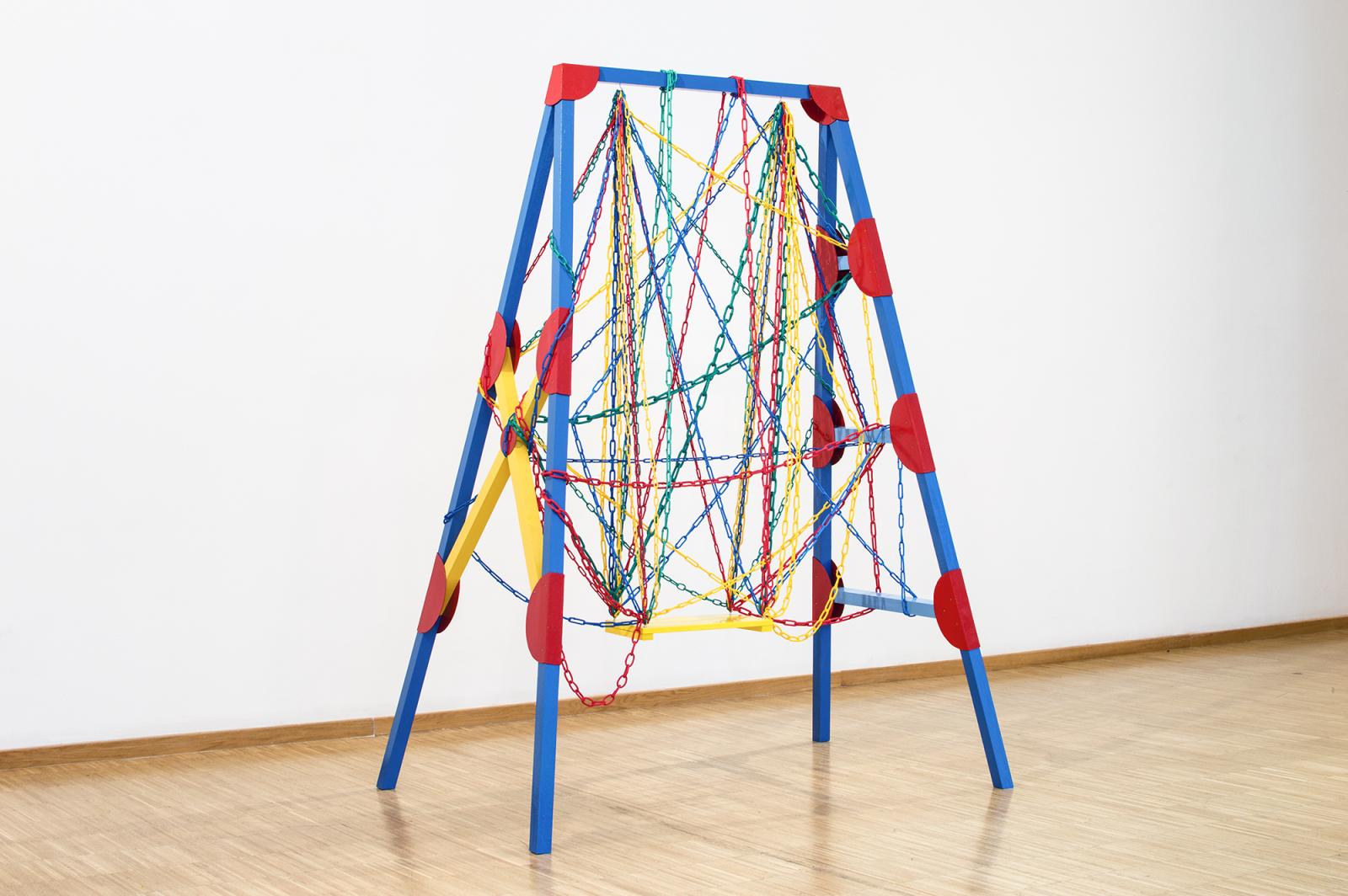 Egy 2018-as, Függőhelyzet című munkája egy színes hinta volt, melynek ülőkéjéhez számos lánc kapcsolódik. A mű ezáltal az egyén „függéseit” jeleníti meg, hiszen a felnőttlét során számos kötelezettségnek kell eleget tenni, például pénzt kell keresni, hogy az ember fenntarthassa magát, de közben a személyes kapcsolataira is oda kell figyelni, a helyzetet pedig bonyolítja, ha az ember művész, hiszen akkor az alkotásra is időt kell szánni. – A kérdés, hogy melyek azok a láncok, amiket még el lehet vágni, hogy az egyén tudjon mozogni a hintán, de ne zuhanjon a földre. Az esetemben például az a dilemma, hogy ha elkezdek napi nyolc órát dolgozni, az nagyon sok energiát elvesz, ezért kérdés, hogy a szabadidőmet mivel töltsem, alkossak-e a műteremben, vagy inkább képezzem magam, esetleg járjak kiállításokra, vagy találkozzam a barátaimmal. Szóval nem tudom, mikor melyik dolgot vegyem ki, hogy még működjön az életem – mondja Judit.