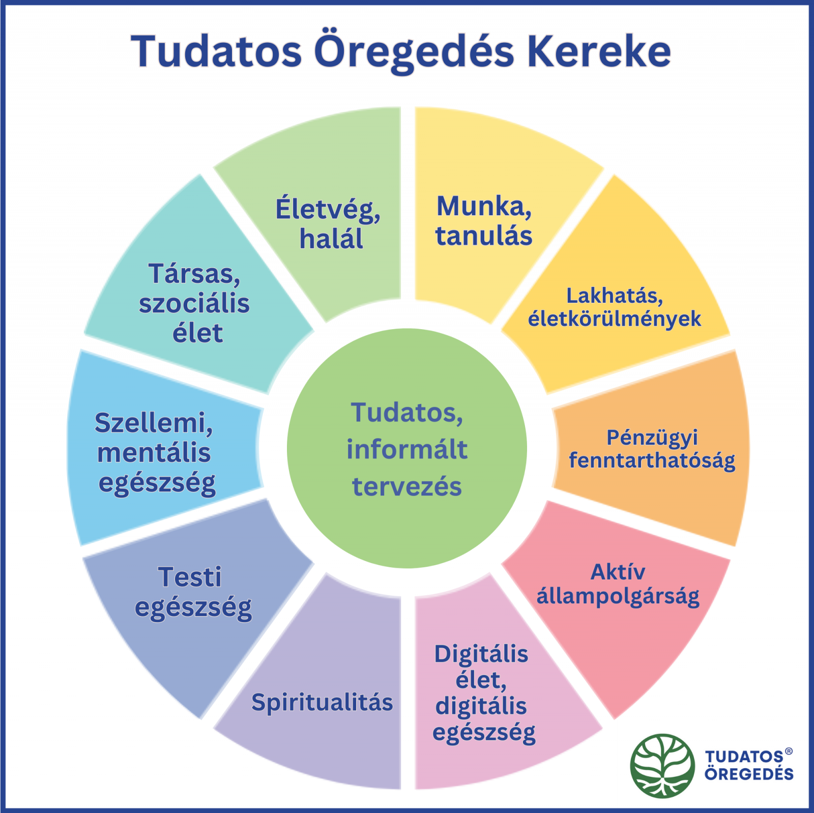 „Létrehoztunk egy modellt, amelyet a tudatos öregedés kerekének neveztünk el, ez tartalmaz minden olyan témát, amely felmerül az öregedés kapcsán. A lakhatás, az életkörülmények, a testi és mentális egészség csakúgy szerepet kap, mint a társas kapcsolatok vagy a munka és a tanulás – igen, még idős korban is fontosak ezek. De az életvégi kérdésekkel ugyancsak foglalkozunk, ezt is igyekszünk a tudatosság szintjére hozni.”