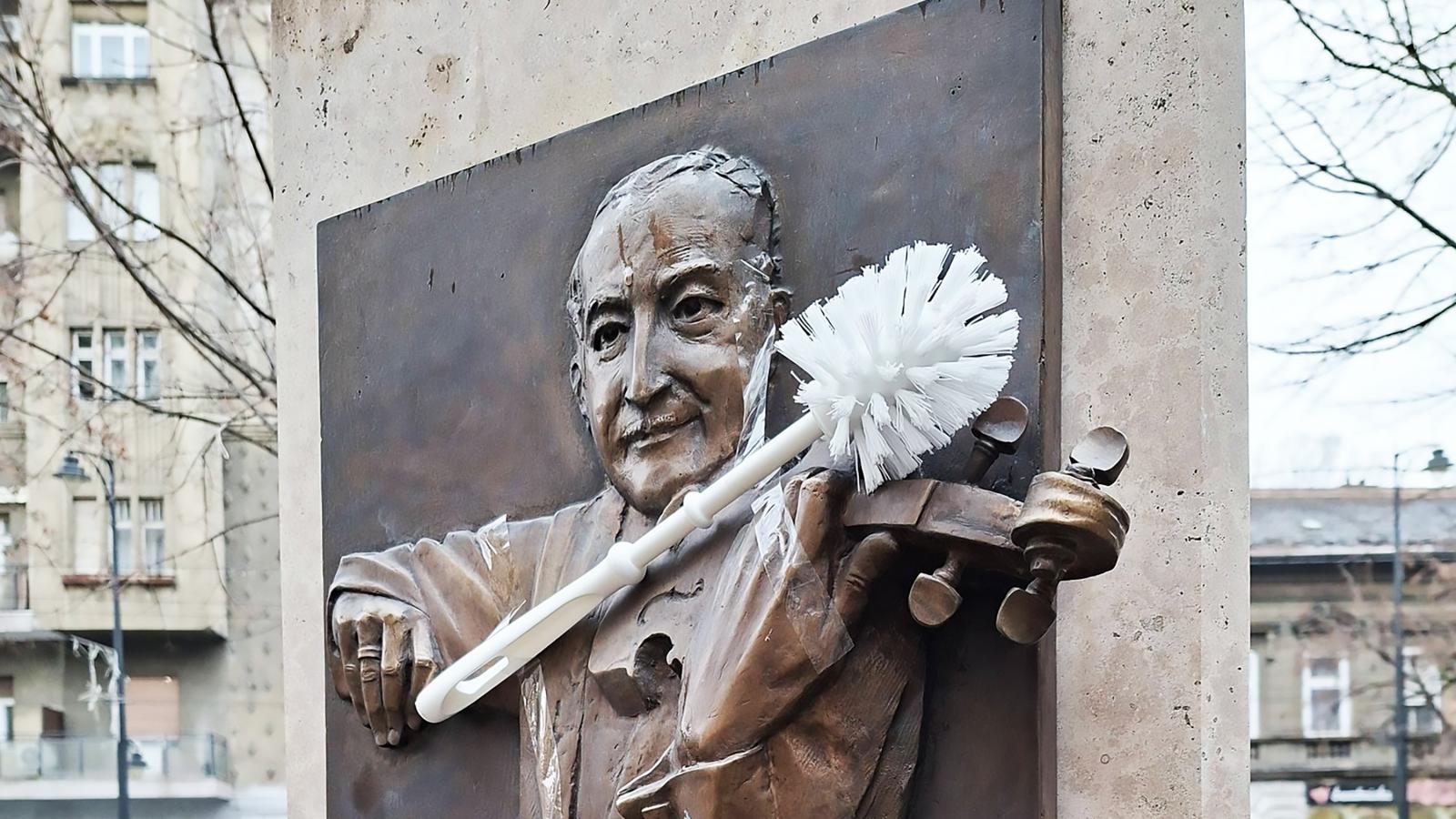 A Magyar Kétfarkú Kutyapárt (MKKP) aktivistái hétfőn vécékeféket raktak a józsefvárosi Muzsikus Cigányok parkja oszlopaihoz.