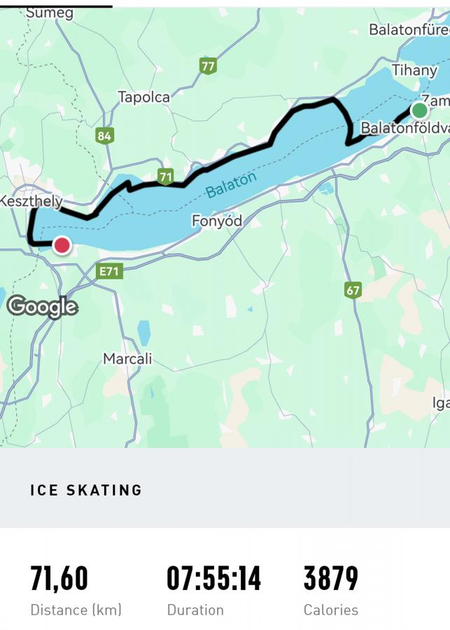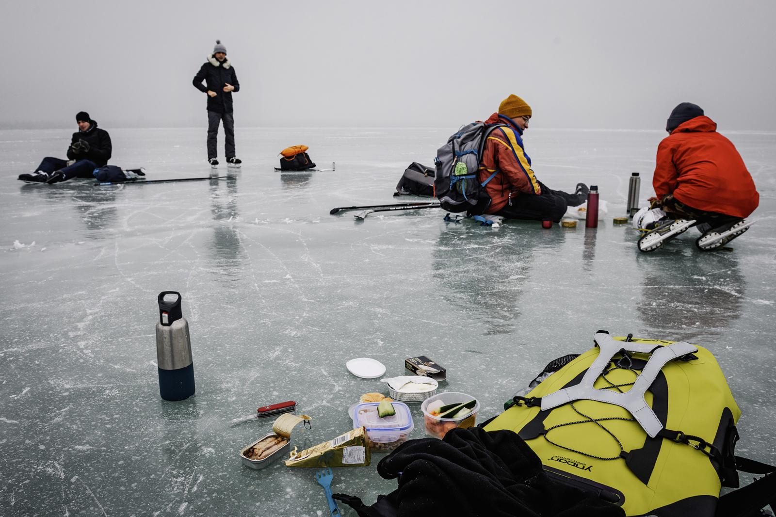 Akik mindhárom napon csúsztak, 160 kilométer feletti távot tettek meg. Bár ez önmagában hatalmas teljesítmény, de a legnagyobb élmény nem számszerűsíthető. A partok, a fotelhuszárok, és végül a saját komfortzónánk elhagyásával nem csupán egy eddig sosem látott fizikai tájra jutottunk el: belül is kicsúsztunk azokból a keretekből, amelyek életünk díszletét adják. Lassanként új, belső tájak jelentek meg, ahol azt tehettük, amire vágytunk. A partok elengedése szimbolikus tettnek is bizonyult: elhagytuk a csónakot a tengerért. Bármerre mehettünk, a befagyott tó sokkal demokratikusabb volt, mint a nyári, hullámzó Balaton. Eközben alig találkoztunk valakivel, miénk volt az egész játszótér, és csak rajtunk múlt, mit kezdünk vele. És mi addig mentünk, ameddig csak bírtuk.