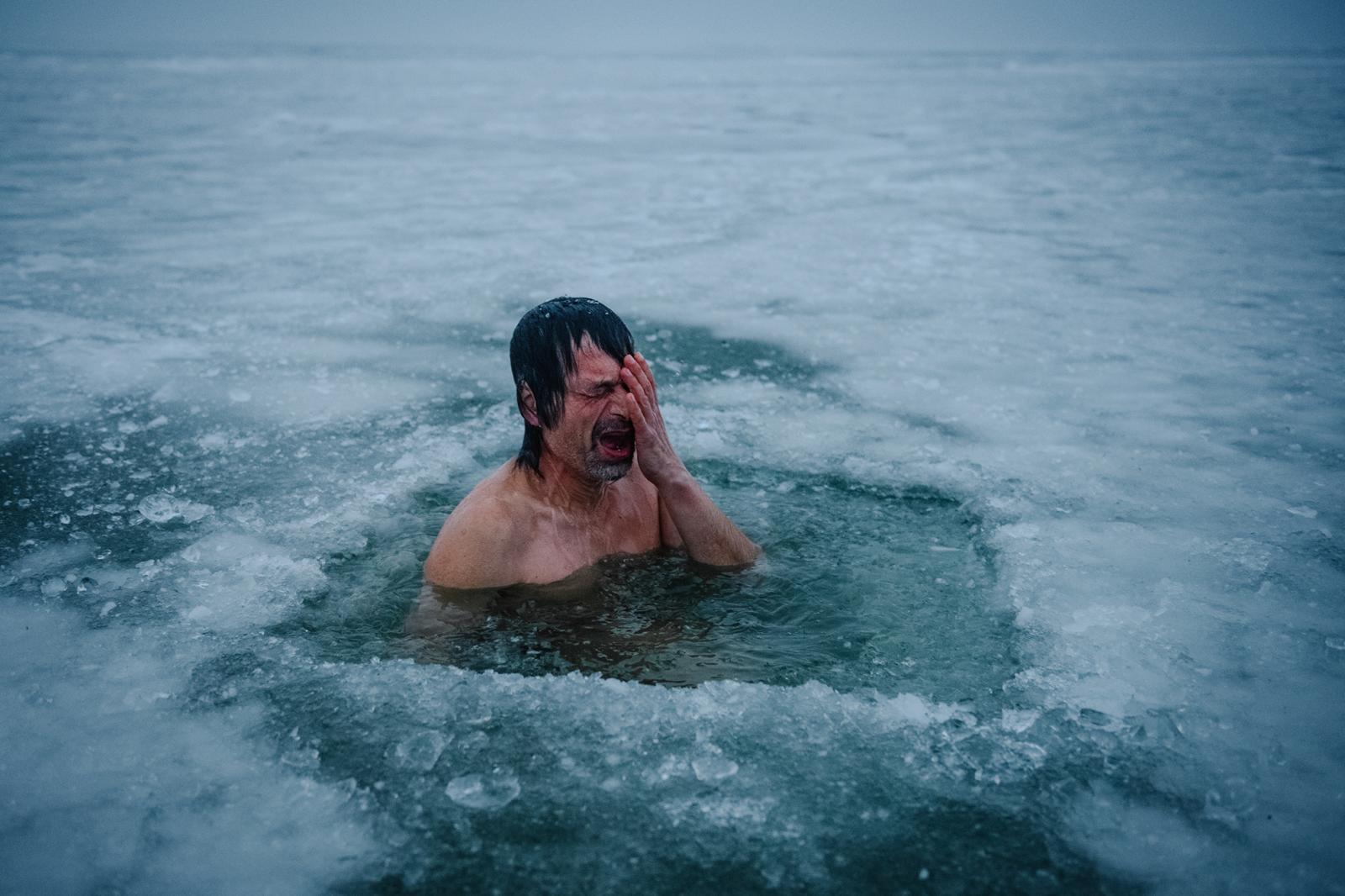 Révfülöpnél fordultunk vissza a déli partra, az utolsó hosszú keresztezésre. Végül Fenyvesen, 16 centis jégbe vájt lékben, jeges fürdővel zártuk az expedíciót.