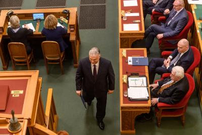Miközben önök sajnálkozva beszélnek rólunk, önök esnek ki a parlamentből – mondta Orbán Viktor viszontválaszában az őt búcsúztató hozzászólásokra, állítva, a Mi Hazánk Mozgalom kivételével egyik parlamenti ellenzéki párt sem jut be az Országgyűlésbe. A gödi Samsung SDI ügyében kijelentette, hogy „Magyarország minden négyzetcentiméterén Magyarország van, és Magyarország minden négyzetcentiméterén a magyar jognak kell érvényesülnie”. – Nagyon helyes, hogy eltűnnek innen a parlamentből, mert semmi szükség olyan pártokra a magyar parlamentben, akik egy ukrán–magyar konfliktusban az ukránok oldalára állnak – mondta az ellenzékről a kormányfő. Szavait látámasztandó Kocsis Máté, a Fidesz frakcióvezetője „kifutó modellek kérdéseinek” nevezte az ellenzéki felszólalásokat, majd ukránozott és brüsszelezett is egy kicsit. Simicskó István, a KDNP frakcióvezetője odaszúrt a DK-nak, hogy hajója a kapitánnyal, Gyurcsány Ferenccel az élen már elsüllyedt, míg szerinte a Momentum bátran nem indul a választáson. Azt is állította, hogy a KDNP elindul a választáson a Fidesszel közösen. – Itt vagyunk és itt is leszünk – fűzte hozzá, majd az Orbán-kormány politikájának folytatásáról, úgynevezett békepártiságáról beszélt.