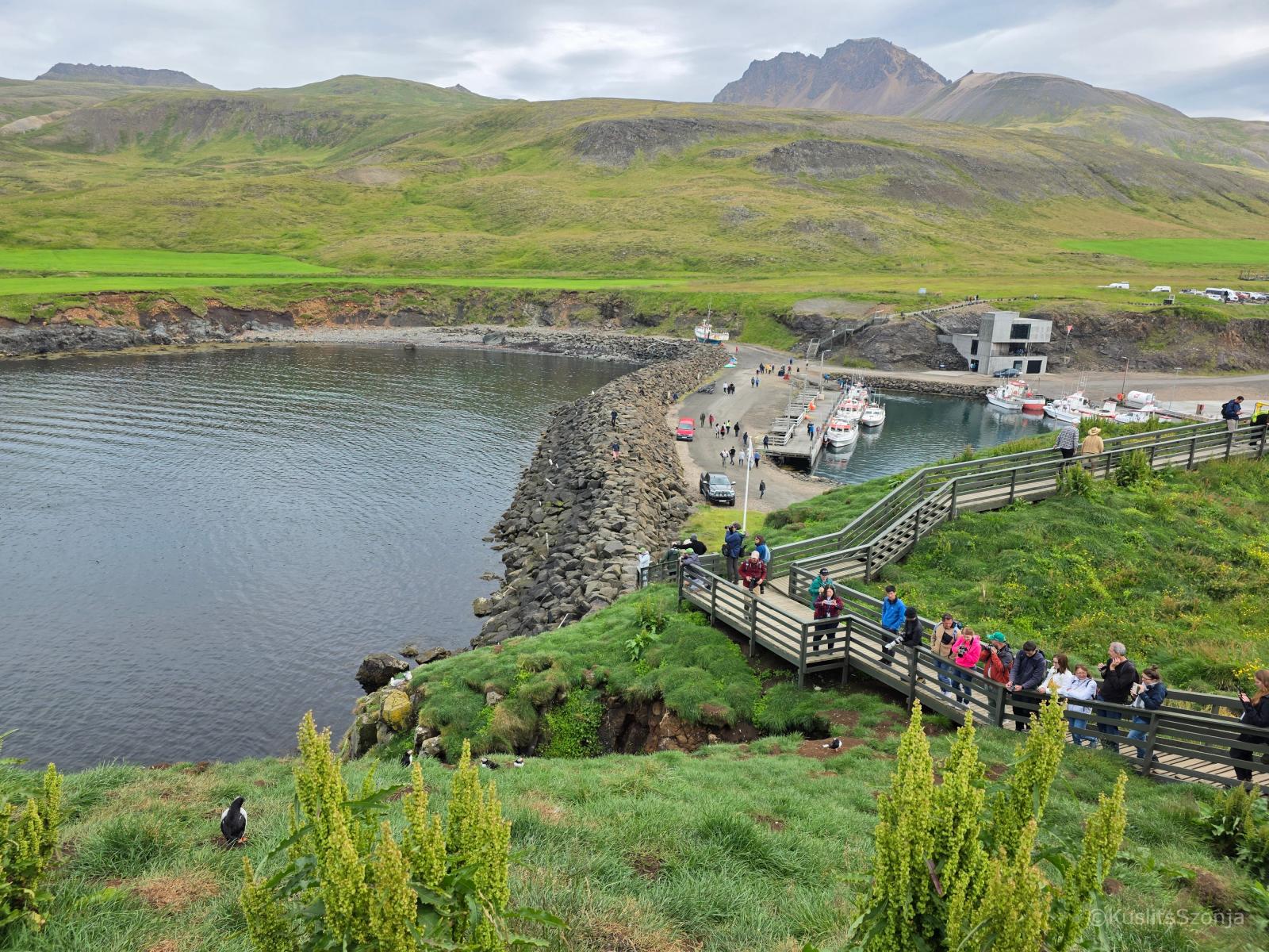 De a lundák vadászata csak nem megy ki a fejemből. Másnap órákig bámulom ezeket a csodálatos állatokat Izland egyik legjobb megfigyelőhelyén, a Borgarfjarðarhöfn félszigeten, ahová egy 6 kilométeres gyalogtúrával jutunk el a kempingből. Az egyik oldalon zord hegyek, a másikon a tenger. Zabolátlan, nyers vidék ez.
