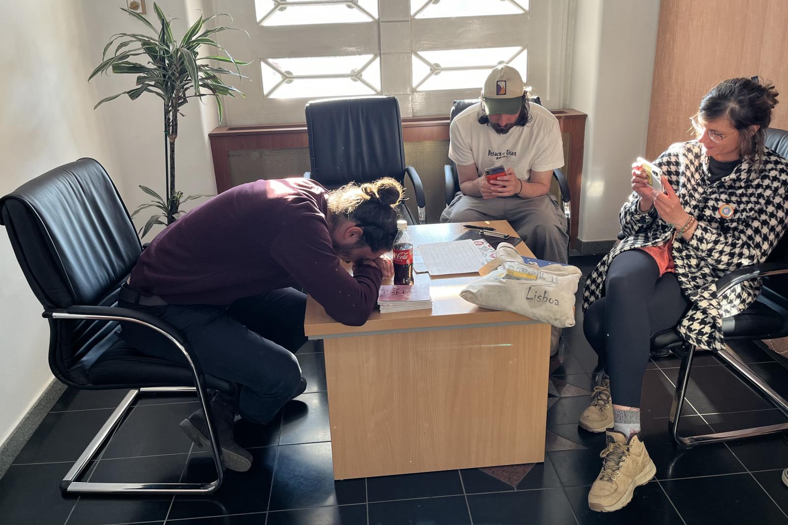 Elkísértük Nagy Dávidot, a Magyar Kétfarkú Kutya Párt listavezetőjét és pártigazgatóját Mohácsra, ahol a pártigazgató a rendelkezésre álló idő utolsó napján, pénteken gyűjtötte az ajánlásokat párttársaival és a közösség „passzivistáival” együtt. Délután fél négykor érkeztünk a mohácsi Városháza igen impozáns épületéhez. Biztosra kellett menni, még fél óra volt hátra, 16 óráig lehetett leadni az ajánlásokat. Nagy Dávid hullafáradtan vágott neki az útnak: – Teljesen elfáradtam lelkileg, úgy utazok majd haza, mint egy szobanövény – sóhajtott fel még a parkolóban. Kérdeztük is, mennyit alszik mostanában,