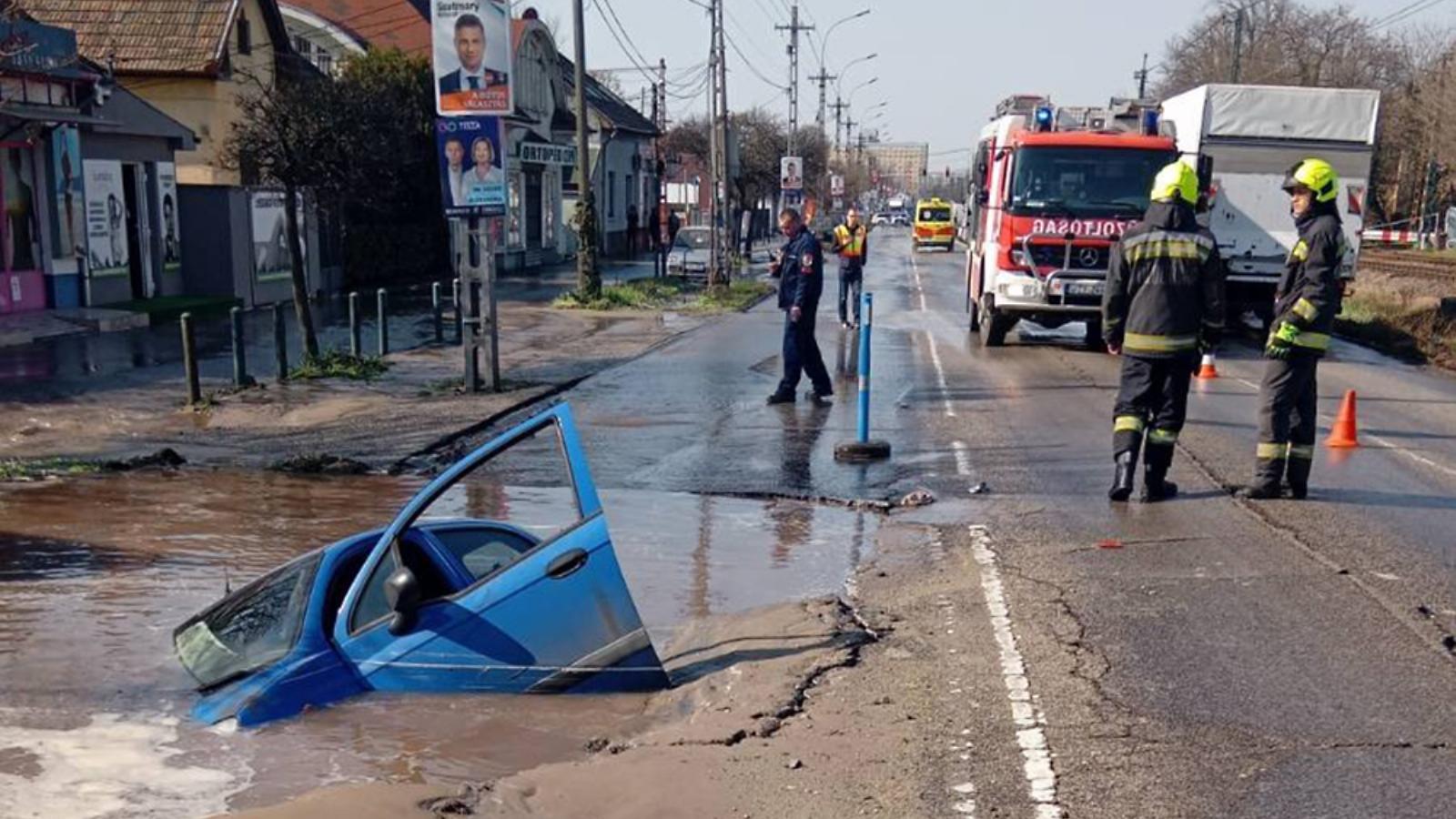Hétfő délelőtt csőtörés történt Budapest XVI. kerületében, a Veress Péter úton – közölte a Budapesti Rendőr-főkapitányság a police.hu oldalon. A BRFK fotókat is közzétett az esetről a Facebook-oldalán, amelyeken látszik, hogy a csőtörés következtében beszakadt az úttest egy autó alatt és a járművet a víz a tetejéig ellepte.