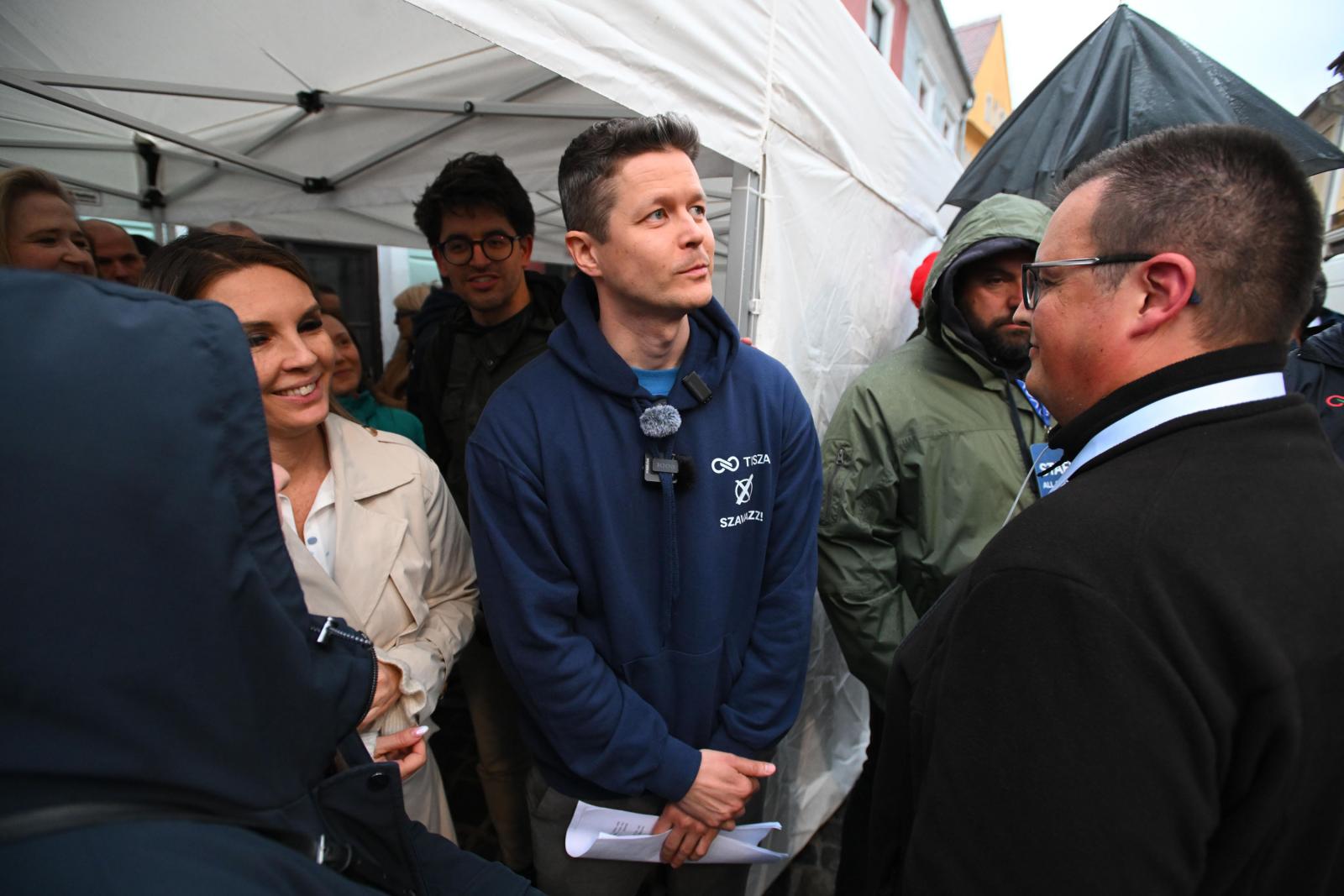 Magyar Péter: Mikor indulnak már a házkutatások a Fidesz-székházban és a Karmelitában?Bárkivel beszélünk, mindenki tudja miről is beszél az ellenzék vezetője. – Felháborító, oroszbérencek, elárulták a hazájuka” – sorjáznak a szitokszavak. De elárulják azt is, félnek tőle, hogy a kormánypárt „egy kis rásegítéssel” elintézi, ismét fölényes győzelmet arasson. – Bármit, tényleg, bármit kinézek belőlük – mondja határozattan egy ötvenes éveiben járó férfi, de fiatal barátja rögtön megjegyzi: – Ezt a sok embert már ők sem tudják lesöpörni, akkor utcára megyünk, megmutatjuk, apád faszával szórakozz – nevet. A tömegben civilként katonákat is találunk, de azt kérik, ennél többet ne írjunk, annyit mondanának csak, ők is változásra vágynak. Itt is, mint a Tisza mostani országjárásán mindenhol, a helyi jelölt is pár szóval igyekszik megszólítani az összegyűlt közönséget.
