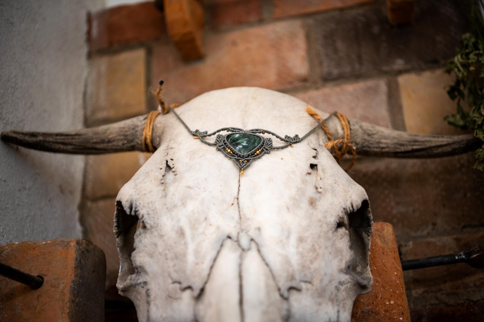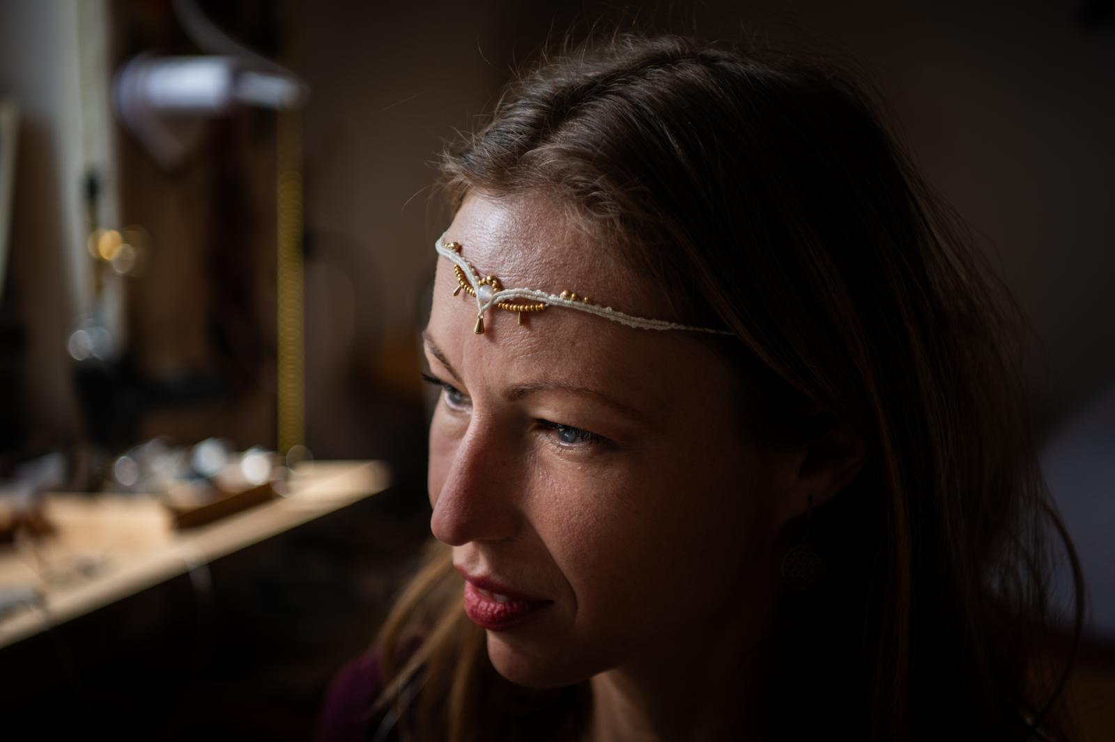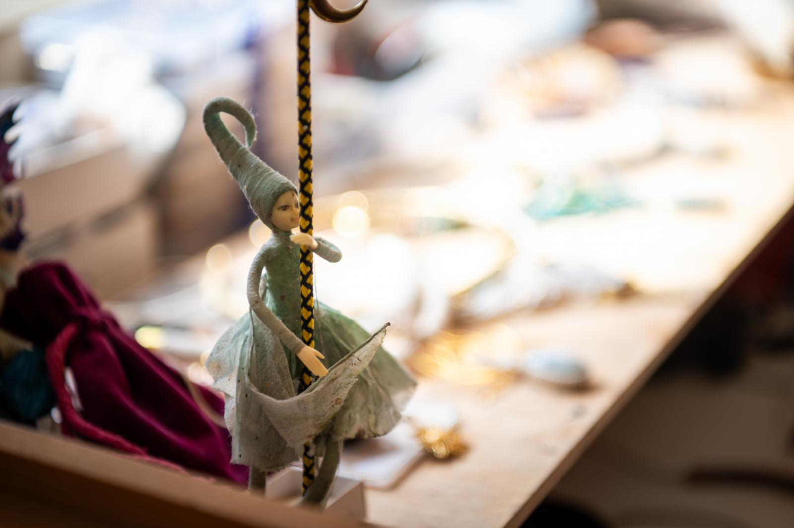 Mihály Cecília műhelyében is számos természeti kincs akad: a jávorszarvas-koponyát például párja, Tibor hozta Svédországból, amikor tűzzsonglőrként beutazta a világot. Lekuporodunk az emelt kis sarokba, a kemence mellé. Körülöttünk madártollak, virágok, kristályok, és az ihletet adó tündérek.