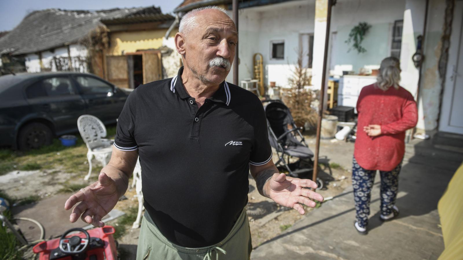 – Na tessék, ott megy az egyik tiszás – mutatnak hirtelen egy, a kerékpárját toló idősebb férfira. Odamegyünk hozzá, bemutatkozik, Grúz Tibornak hívják, 70 éves, korábban évekig kamionozott, és most a párjával él a faluban.