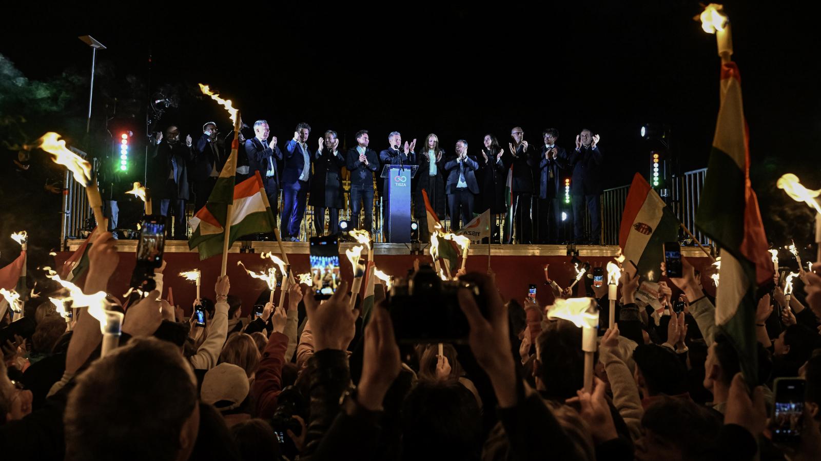 Ahogy telt az idő a tömeg egyre nagyobb lett, amikor az első eredmények kijöttek, már a felső rakparton is sűrűn álltak az emberek, kisgyerekesek és a szavazásról még csak álmodozó kamaszok is megjelentek, hogy az új korszak kezdetét ünnepeljék. A tömeg ujjongva fogadta a hatalmas kivetítőkön megjelenő számokat. Kilenc óra körül már egyre többen mertek valóban örülni, és az utcai büfékben sem az üdítő fogyott már a legjobban, az igazi ünneplés pedig akkor kezdődött, amikor a Fidesz politikusai vert seregként megjelentek a kivetítőkön. – Már ezért megérte – mondta egy fiú Lázár János savanyú arckifejezésén derülve. – Mi és ők, ebben éltem 16 évet. Most csak Mi vagyunk – örömködött egy középkorú hölgy, aki kiemelte, elviselhetetlen volt számára ez a megosztottság, amiben éltünk. Véleményével nem volt egyedül, a legtöbben elvárásként fogalmazták meg az elkövetkezendő Tisza-kormánytól a nemzetegyesítést: – Sóval kell felhinteni a közmédiát, a kormánymédiát, mindent, aki éjjel-nappal hazudott az embereknek. Temessük be azokat az árkokat végre.