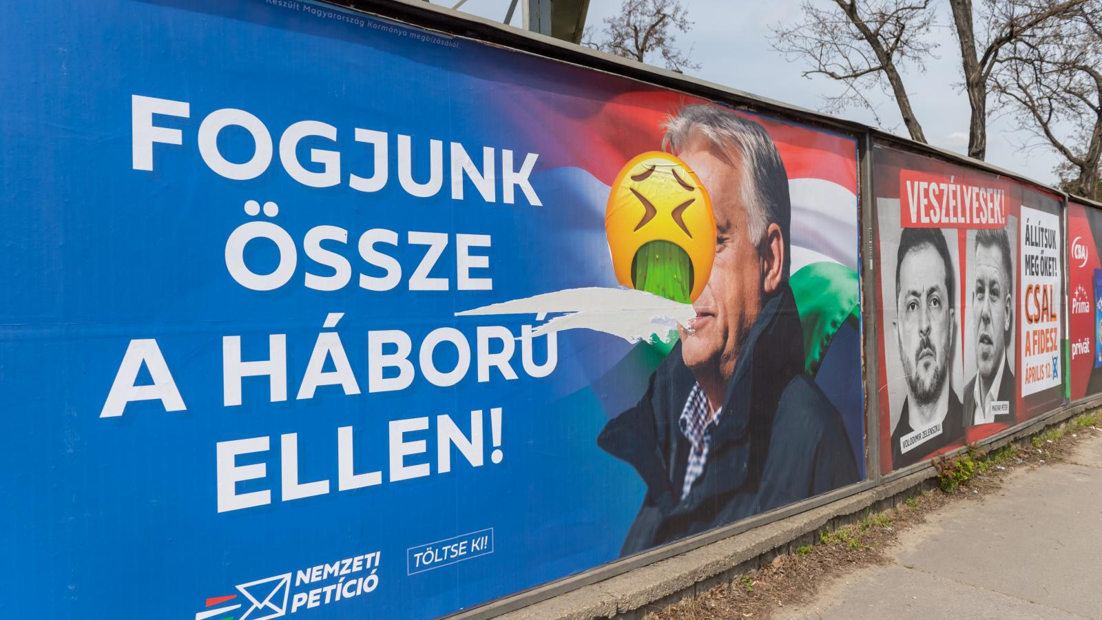 De térjünk vissza magukra a plakátokra! íengem többek között egy Orbán-plakát fogott meg: minden bizonnyal többen is találkoztak a „Fogjunk össze a háború ellen!” szlogennel, és a Döbrögi-vezérünk hősies, céltudatos, távolba révedő tekintetével ellátott molinókkal. Az ellenzéki rongálók ezekre is hamar reagáltak. A miniszterelnök képét gyakran „SZAR” feliratú, QR-kódokat tartalmazó matricákkal „látták el”, amelyek egy oldalra irányítanak: itt egyik választópolgár társunk véleményét olvashatjuk el, amely rávilágít a rendszer néhány sajátos jellemvonására – többek között korrupciójára.