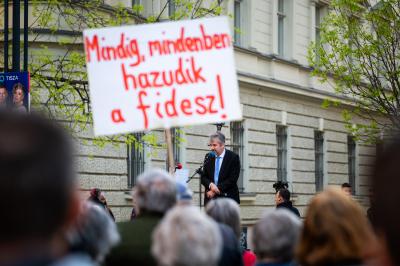 Nagy Dávid az MKKP rendkívüli sajtótájékoztatóján április 9-én